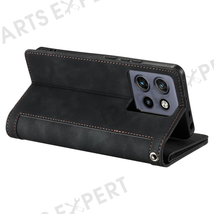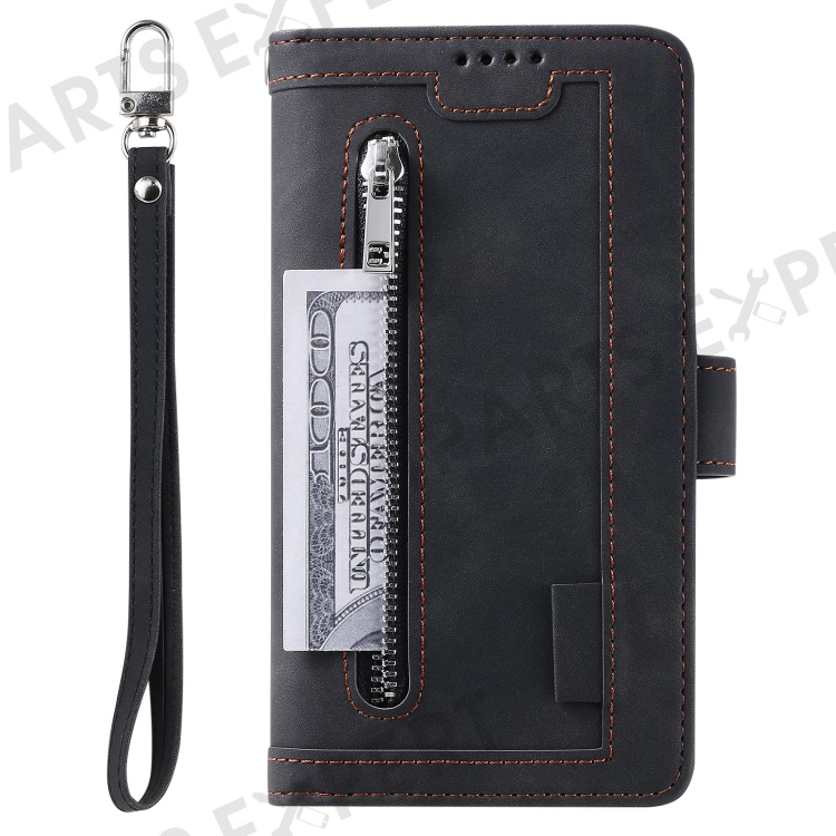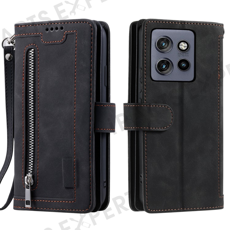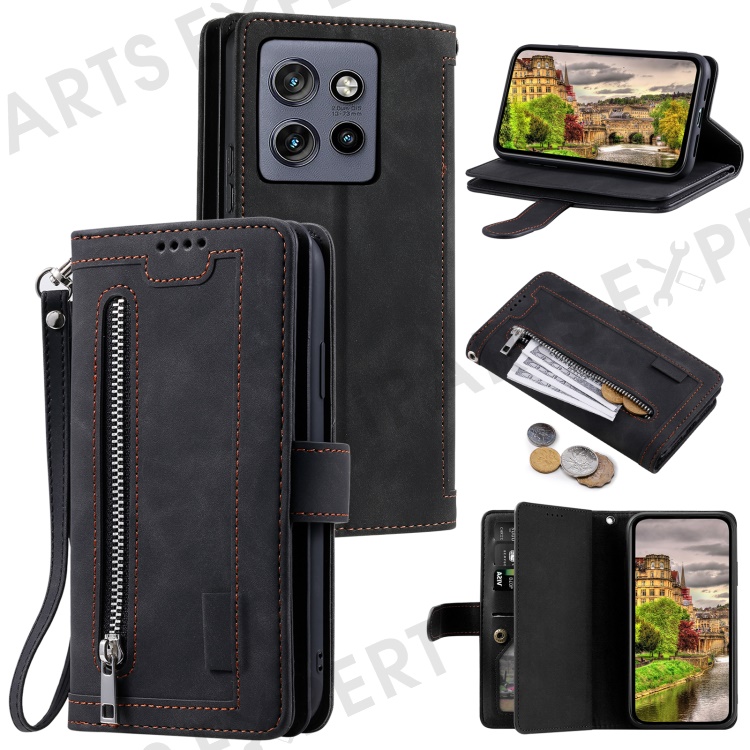For Motorola Edge 50 Neo 5G / Moto S50 5G / Thinkphone 25 5G Case PU Leather Phone Cover with Zipper Wallet 9 Card Slots - Black