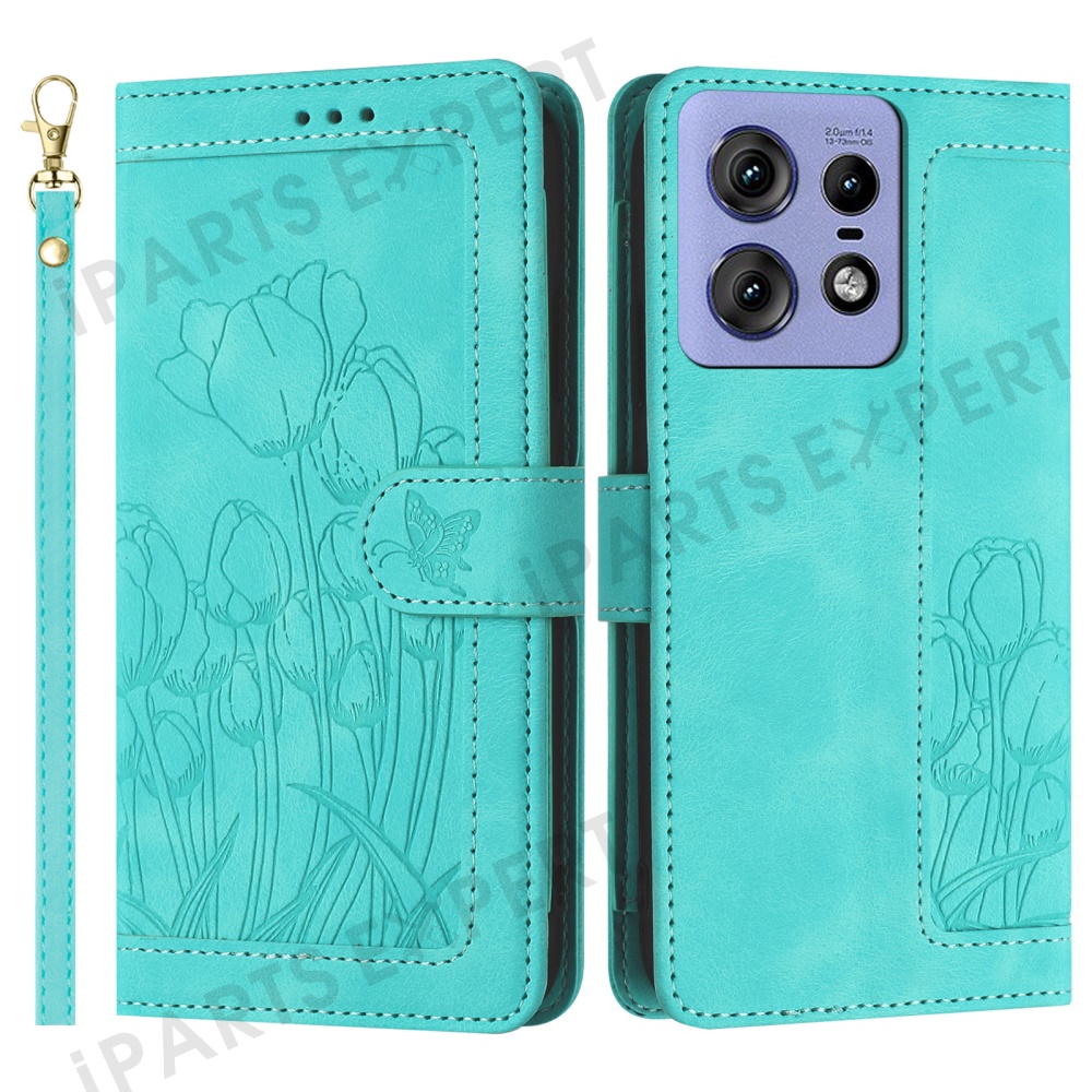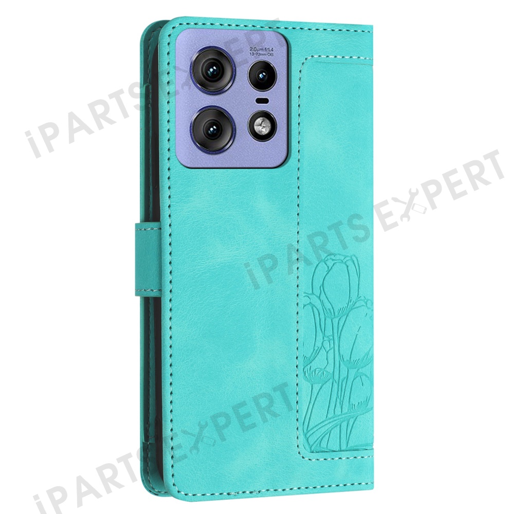 For Motorola Edge 50 Pro 5G Tulip Leather Case Phone Cover with 5 Card Slots Wallet - Green