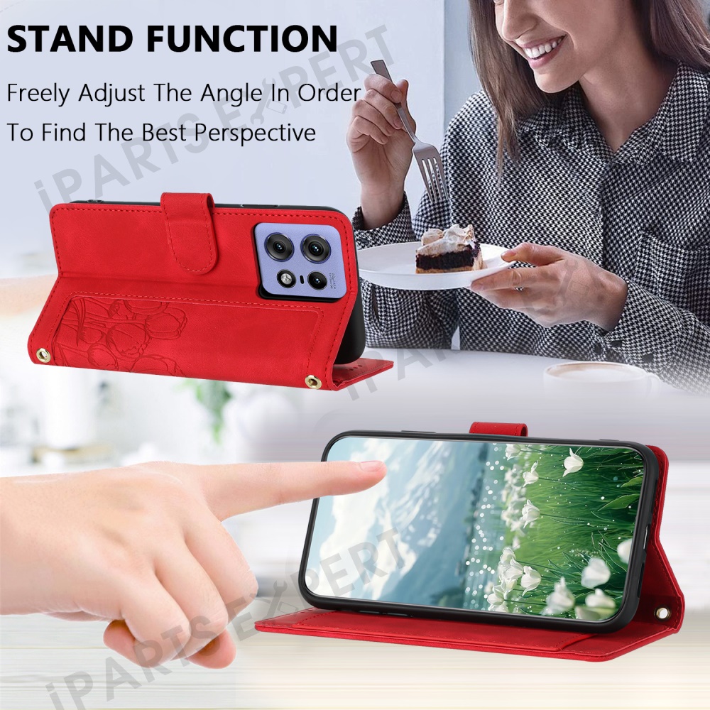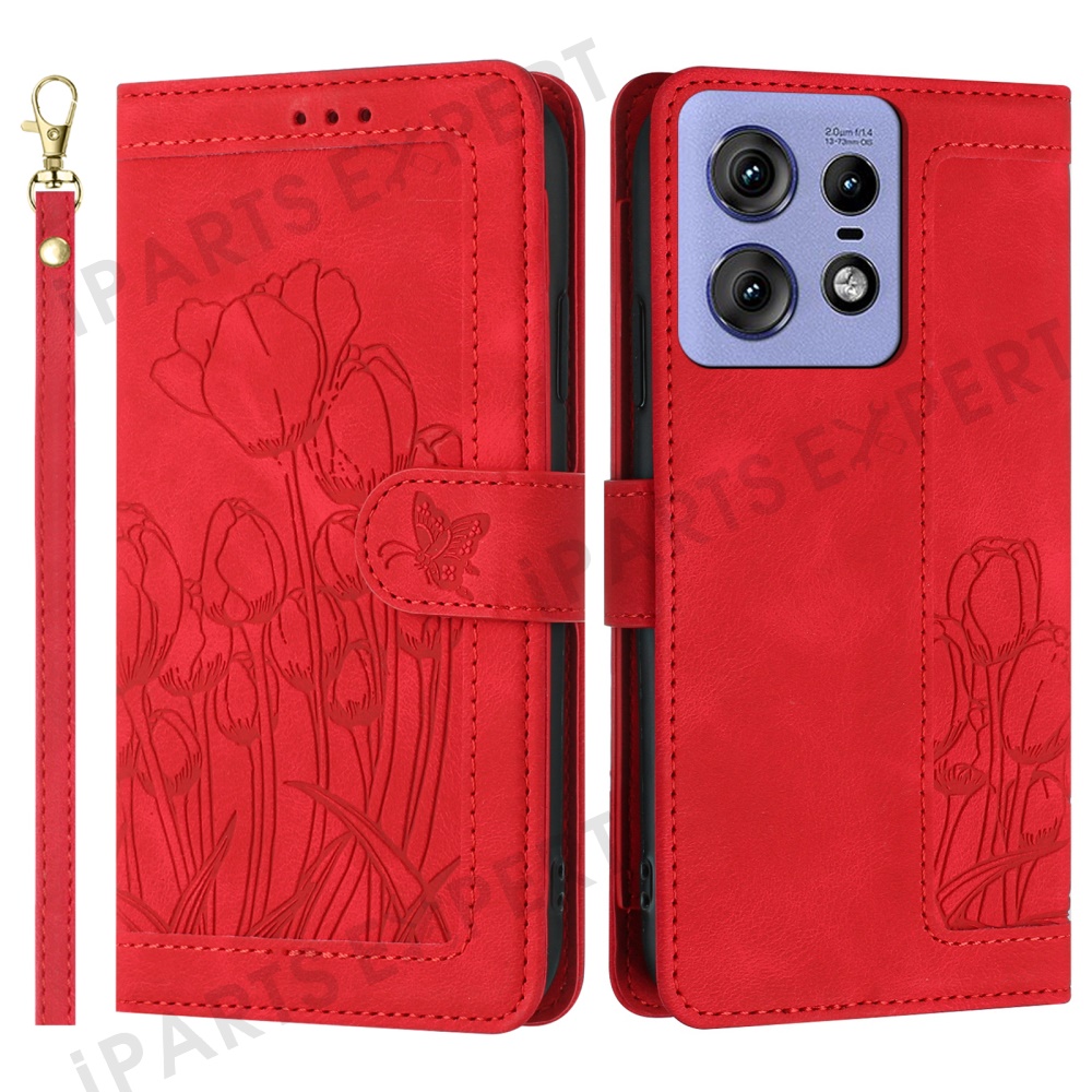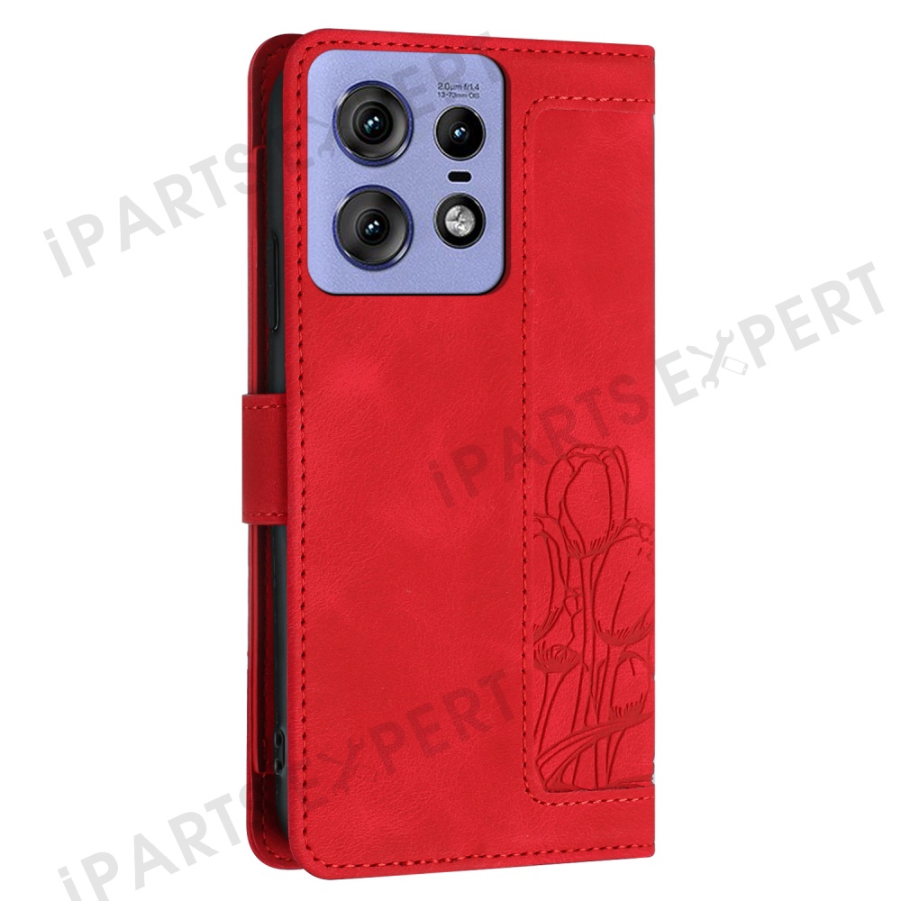 For Motorola Edge 50 Pro 5G Tulip Leather Case Phone Cover with 5 Card Slots Wallet - Red
