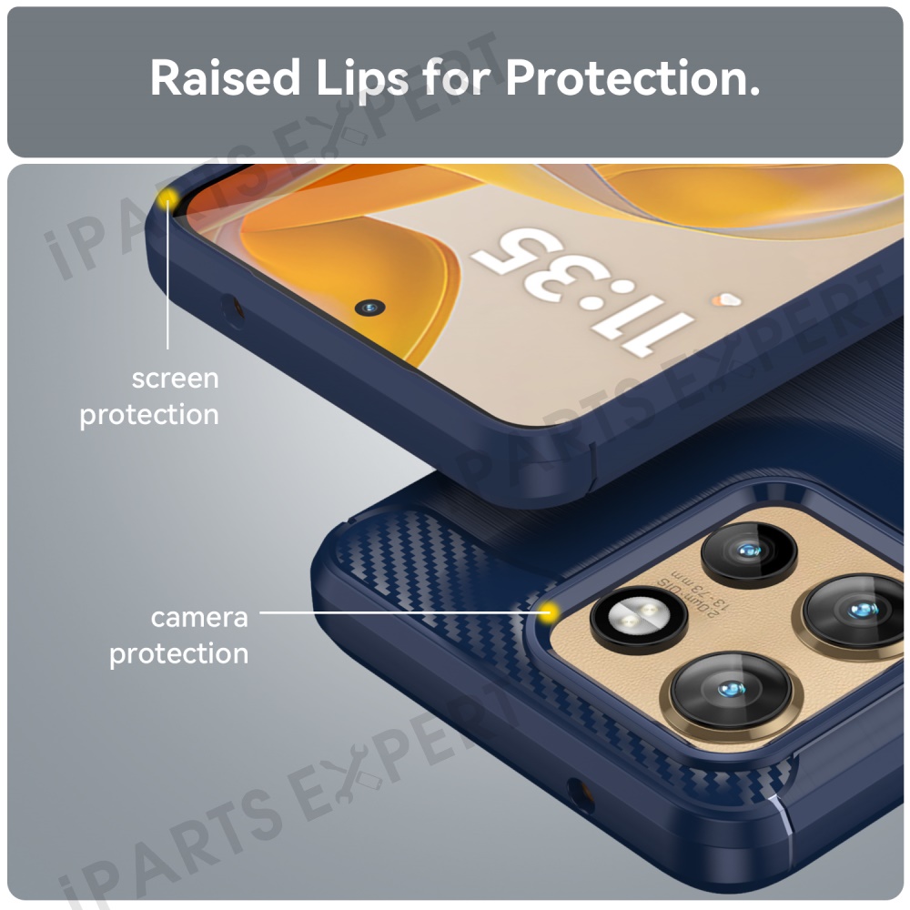 For Motorola Edge 60 Neo 5G / Edge 50 Neo 5G / Moto S50 5G / ThinkPhone 25 5G Case Carbon Fiber Texture Brushed Phone Back Cover - Blue