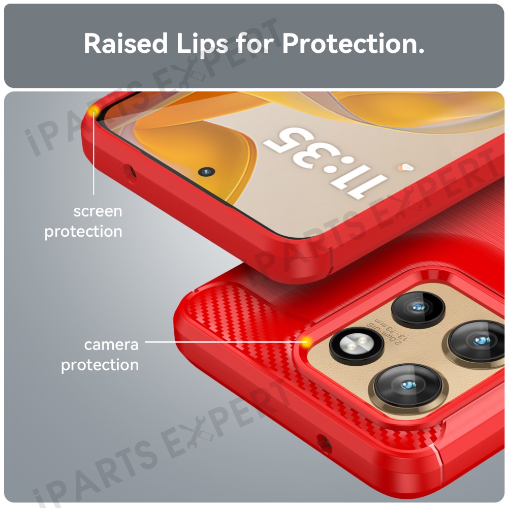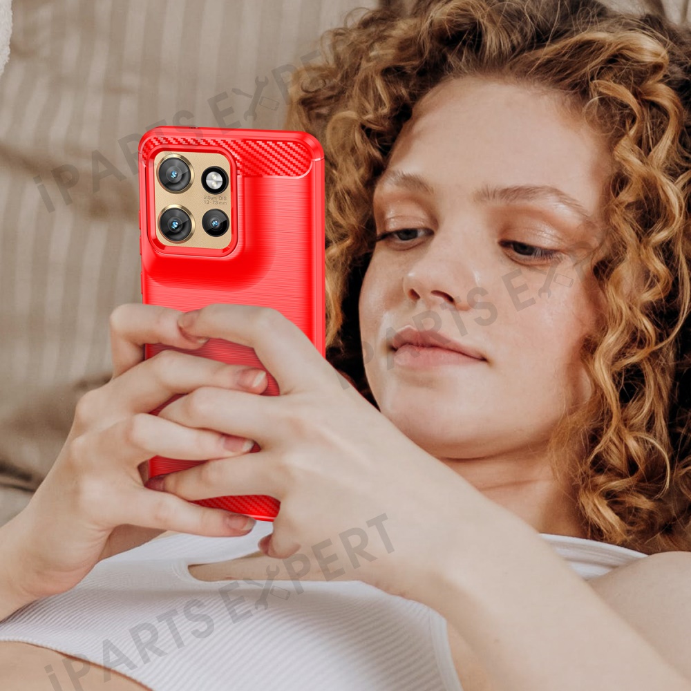 For Motorola Edge 60 Neo 5G / Edge 50 Neo 5G / Moto S50 5G / ThinkPhone 25 5G Case Carbon Fiber Texture Brushed Phone Back Cover - Red