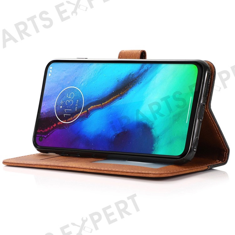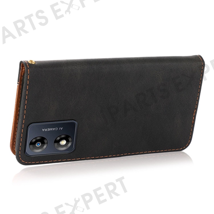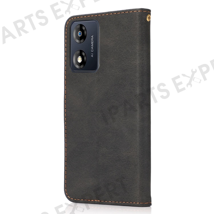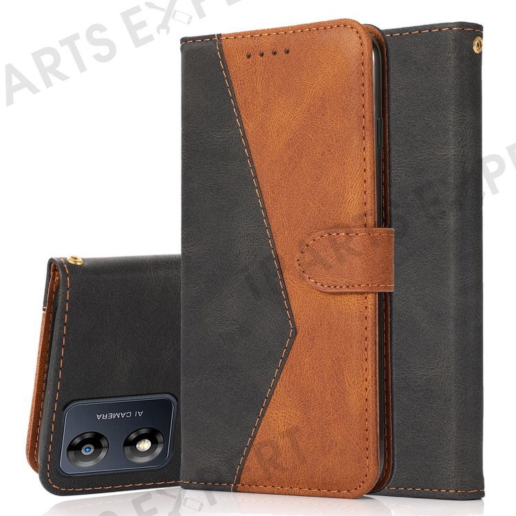 For Motorola Moto E13 4G Splicing PU Leather Wallet Phone Case Flip Stand Shockproof Cover - Black+Brown