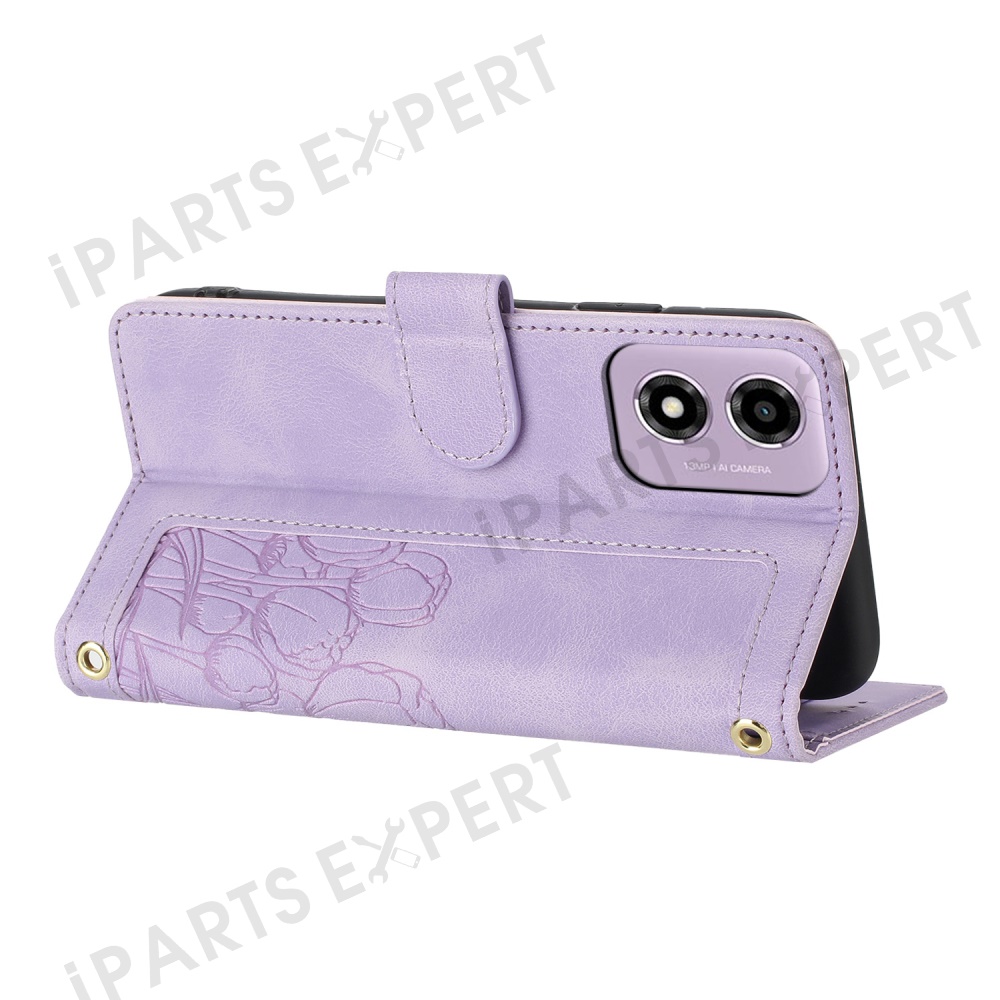 For Motorola Moto E14 4G Tulip Leather Case Phone Cover with 5 Card Slots Wallet - Purple