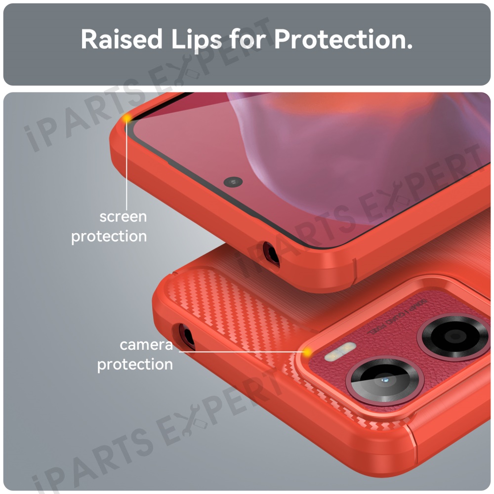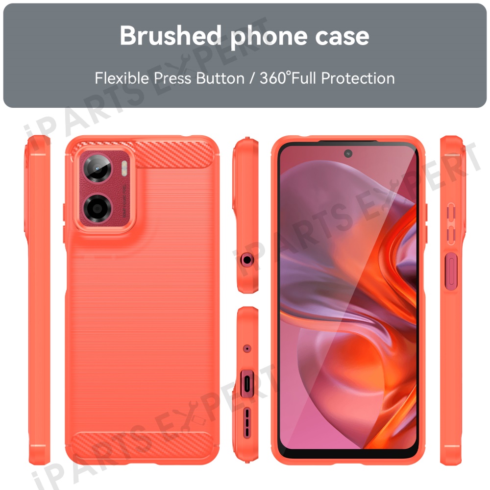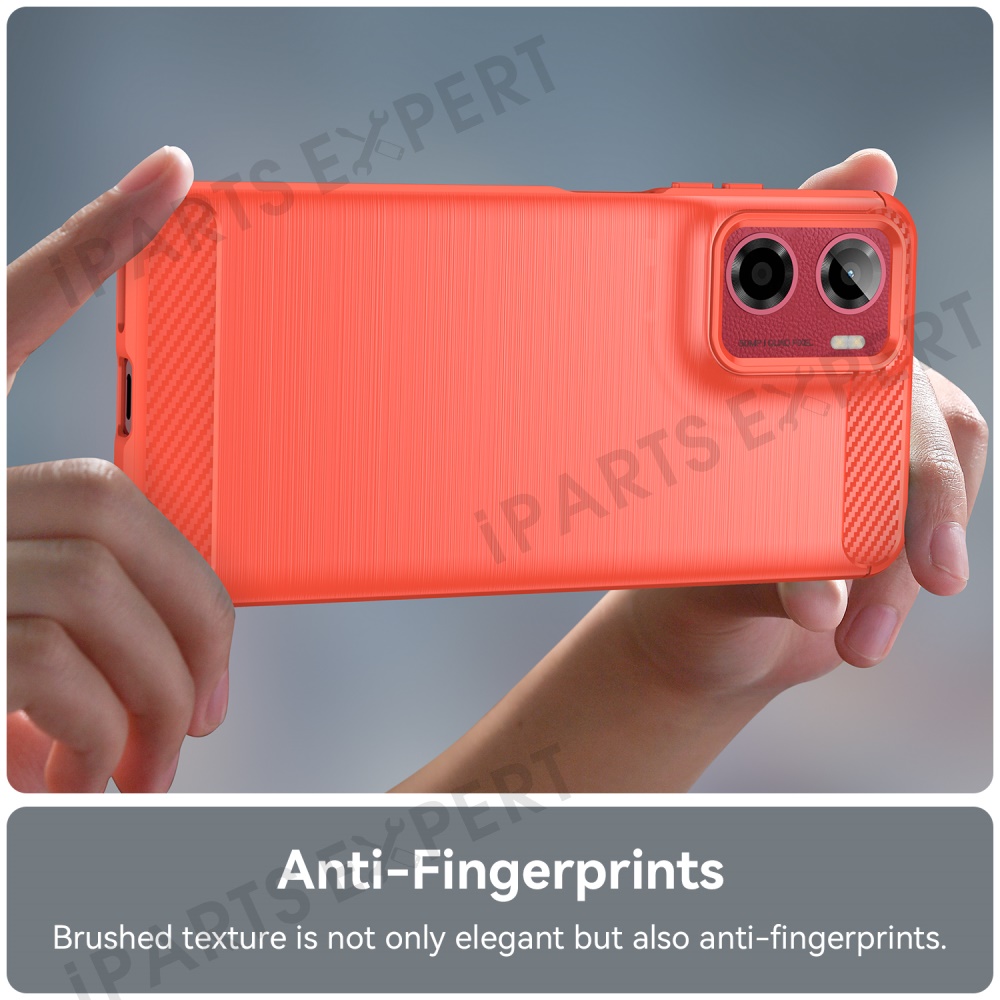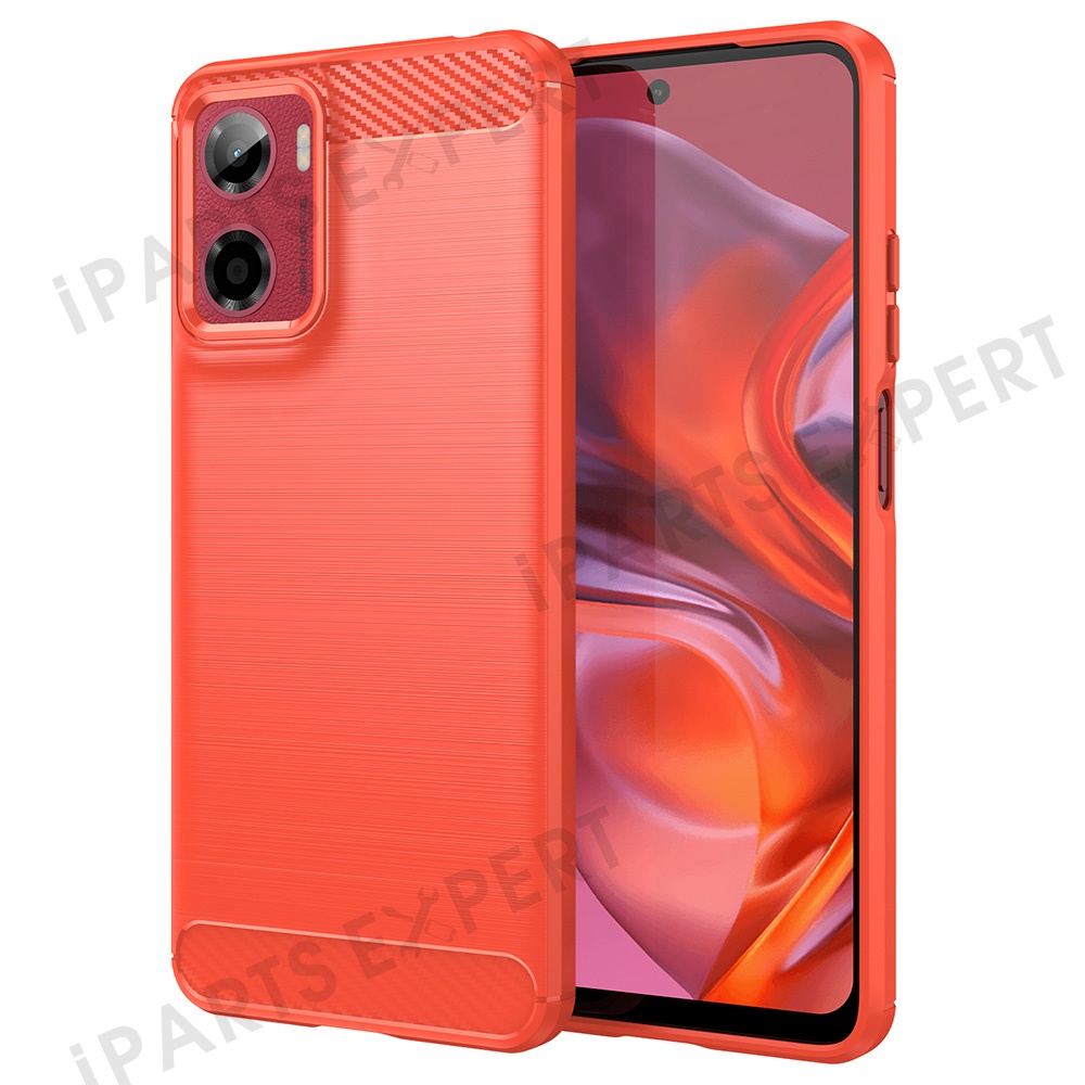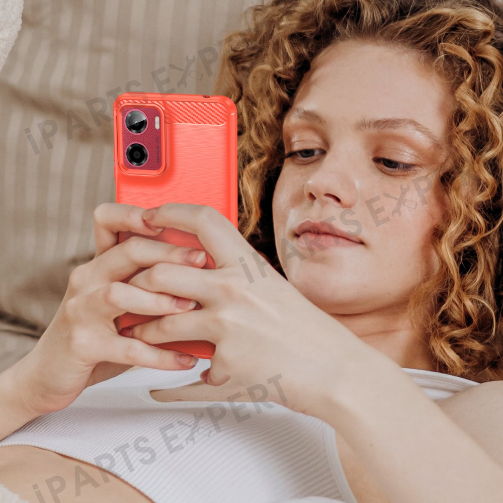 For Motorola Moto E15 4G / G05 4G Case Protective Phone Cover Carbon Fiber Texture Brushed - Red