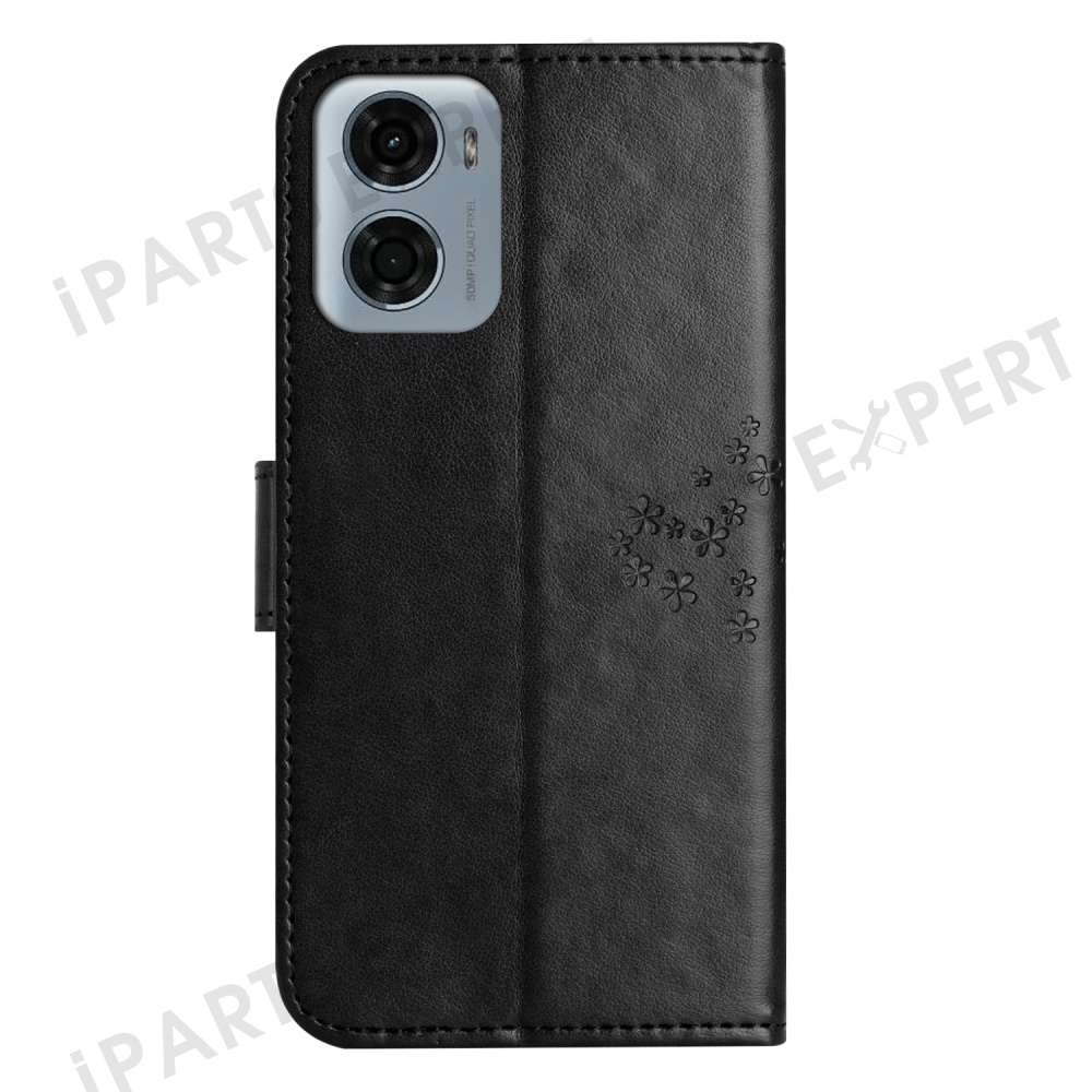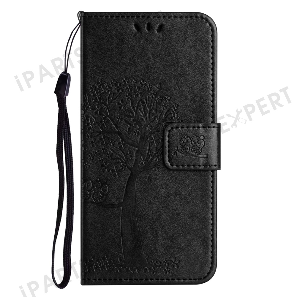 For Motorola Moto E15 4G / G05 4G Case PU Leather Owl Tree Imprinted Wallet Phone Cover - Black