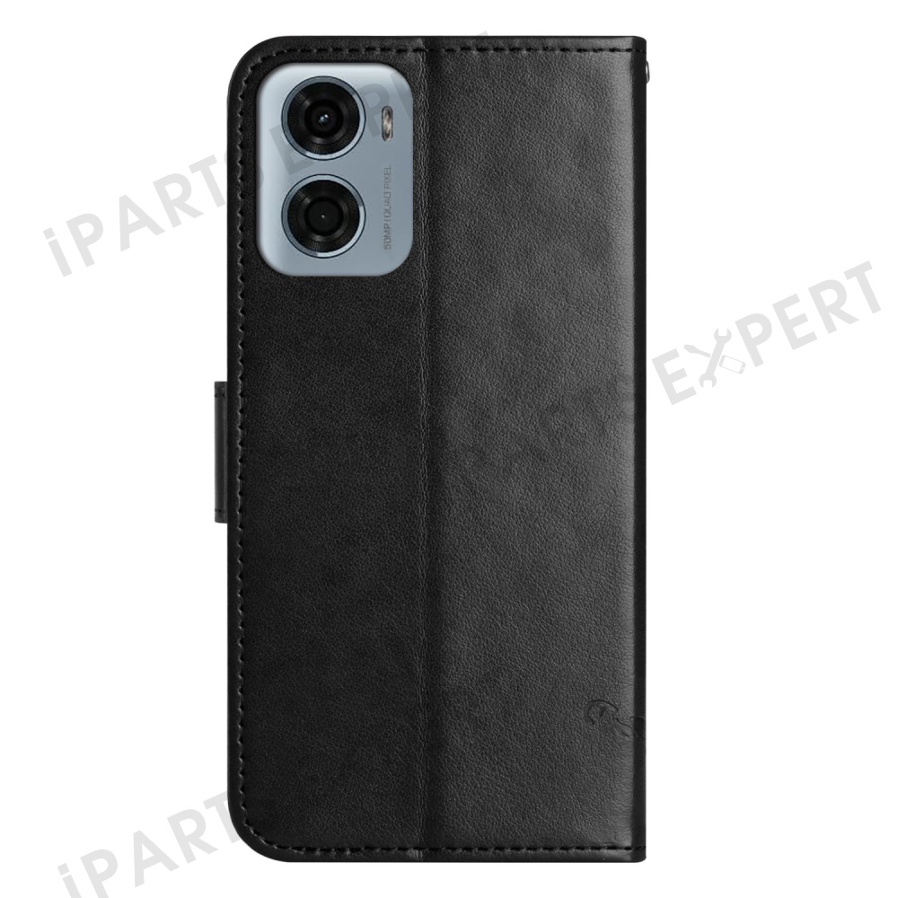 For Motorola Moto E15 4G / G05 4G Case Wallet Stand Imprinted Butterfly Flower PU Leather Phone Cover - Black