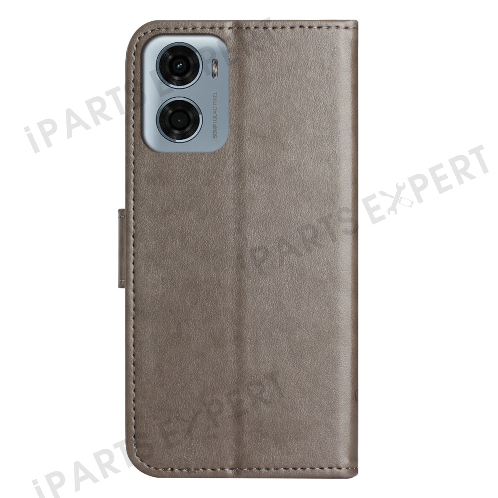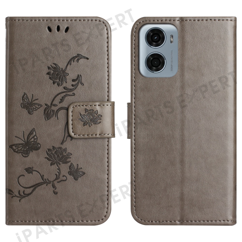 For Motorola Moto E15 4G / G05 4G Case Wallet Stand Imprinted Butterfly Flower PU Leather Phone Cover - Grey