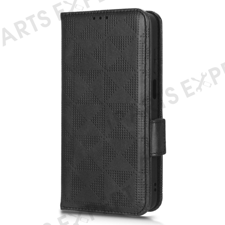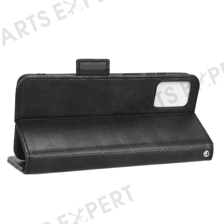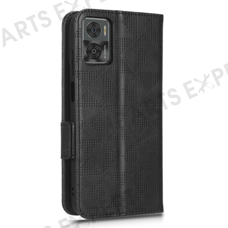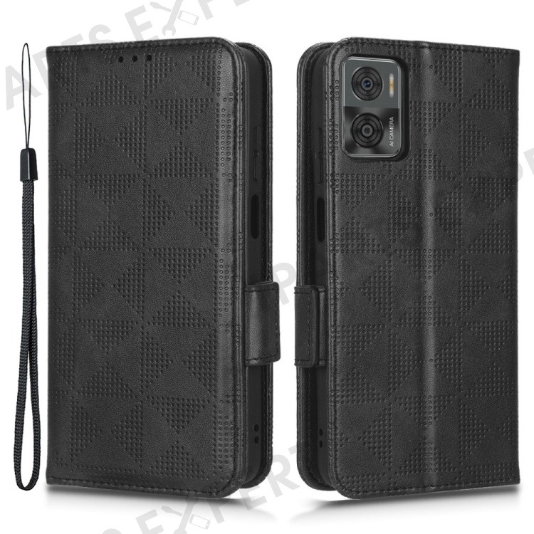 For Motorola Moto E22i 4G / E22 4G Anti-drop Imprinted Triangle Pattern PU Leather Phone Case Stand Magnetic Flip Wallet Cover with Hand Strap - Black