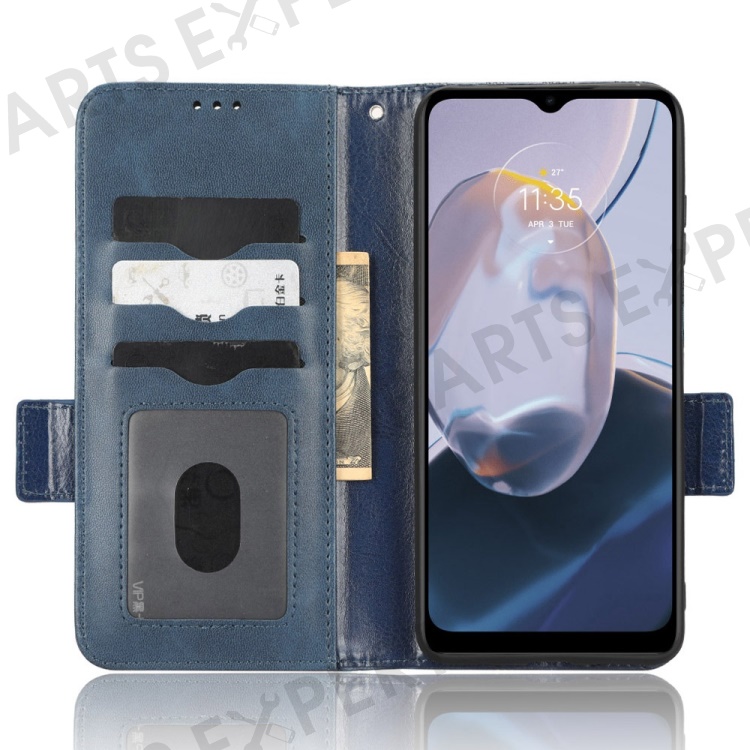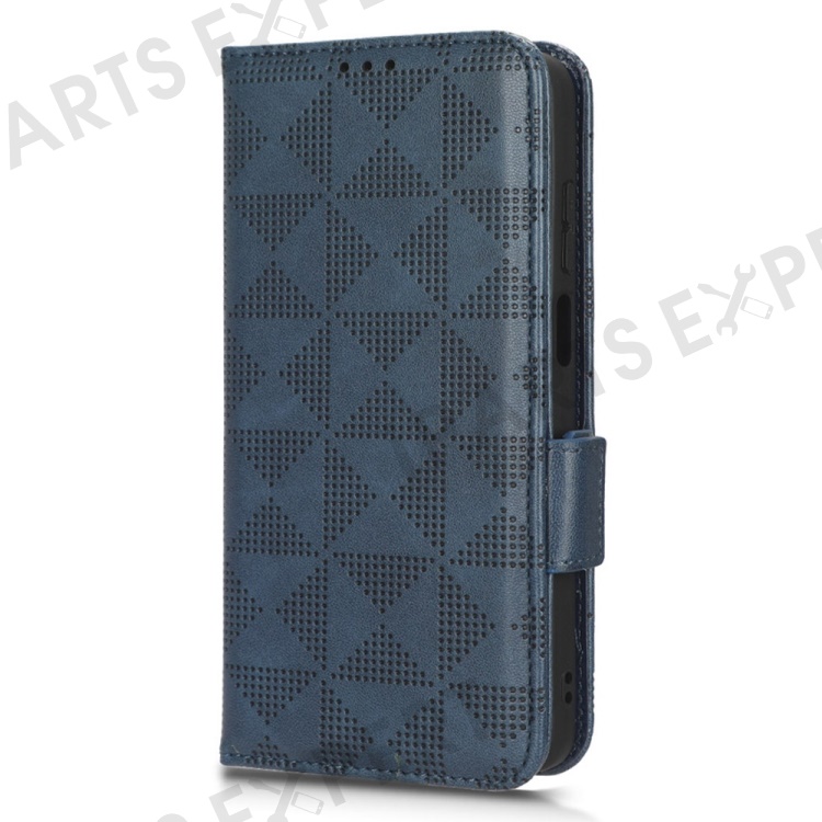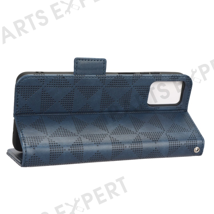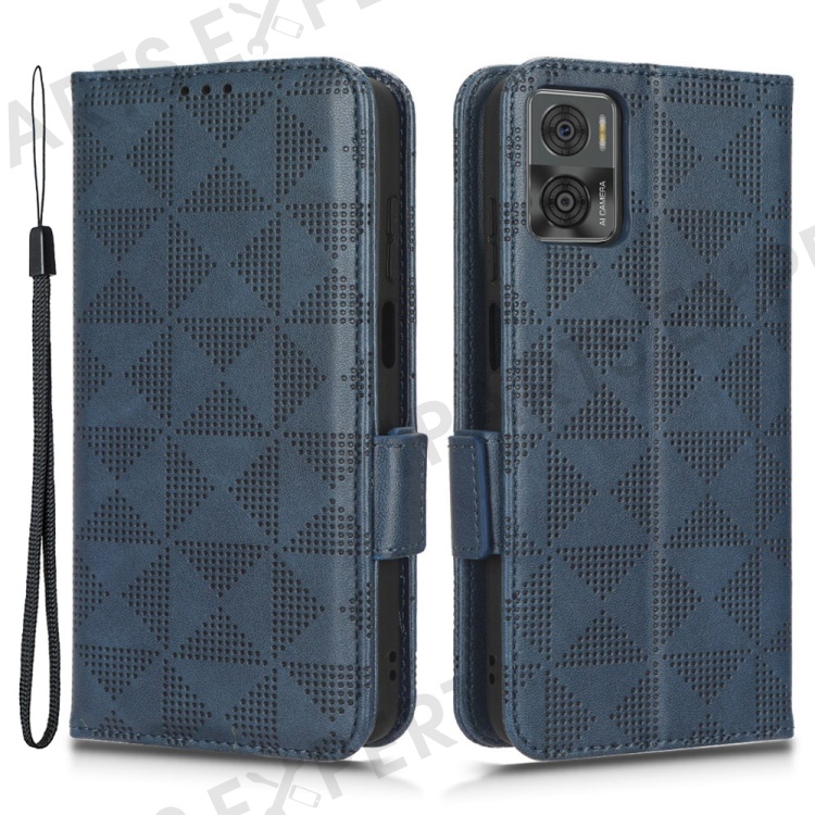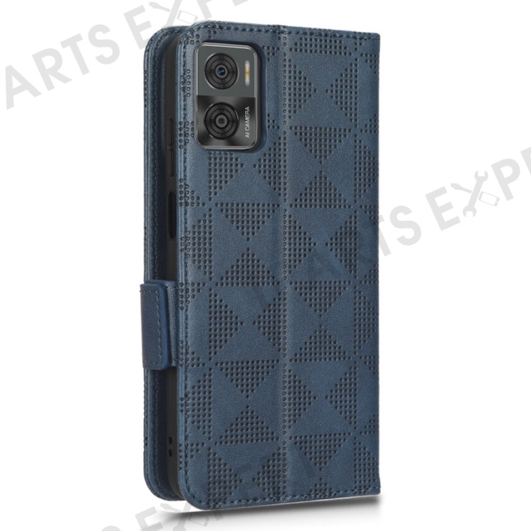 For Motorola Moto E22i 4G / E22 4G Anti-drop Imprinted Triangle Pattern PU Leather Phone Case Stand Magnetic Flip Wallet Cover with Hand Strap - Blue