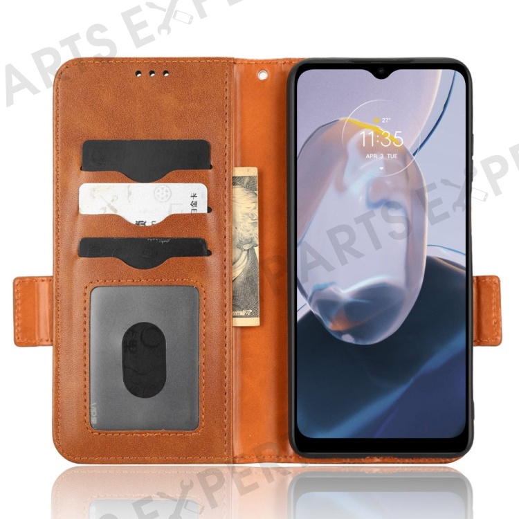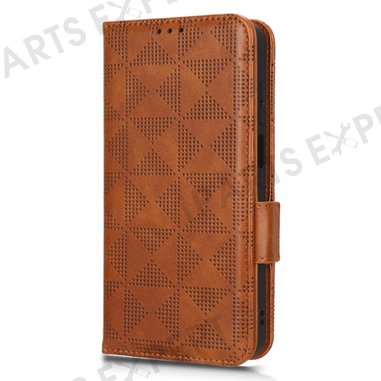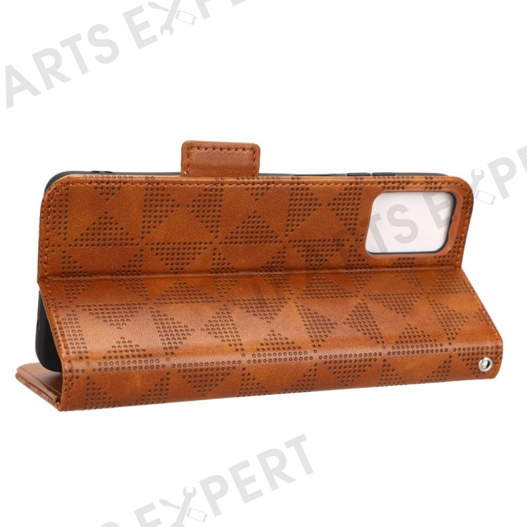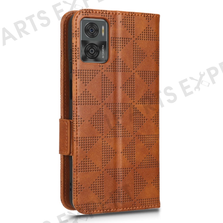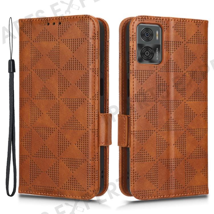 For Motorola Moto E22i 4G / E22 4G Anti-drop Imprinted Triangle Pattern PU Leather Phone Case Stand Magnetic Flip Wallet Cover with Hand Strap - Brown