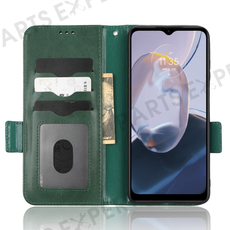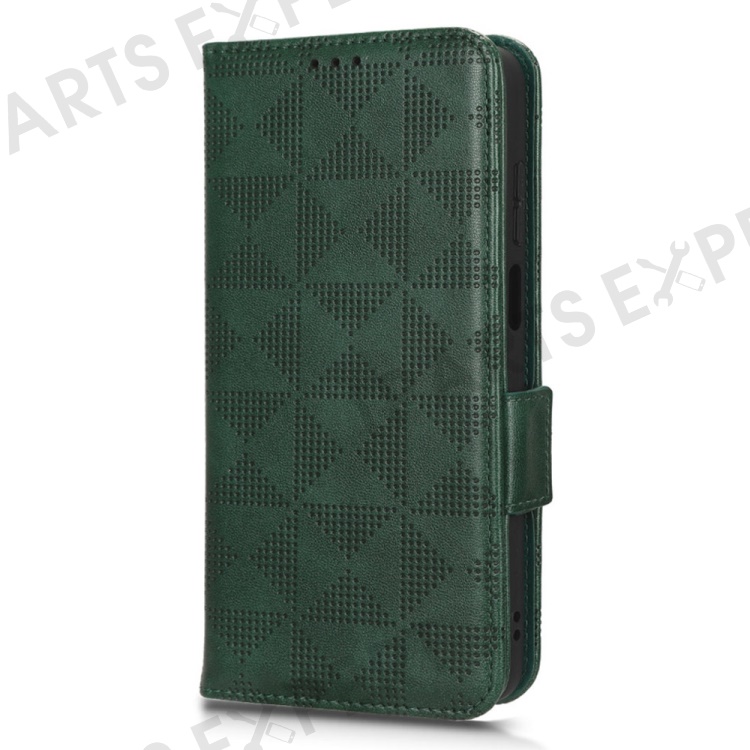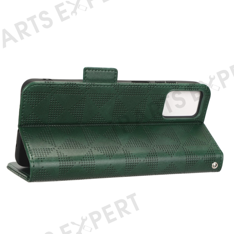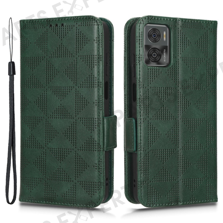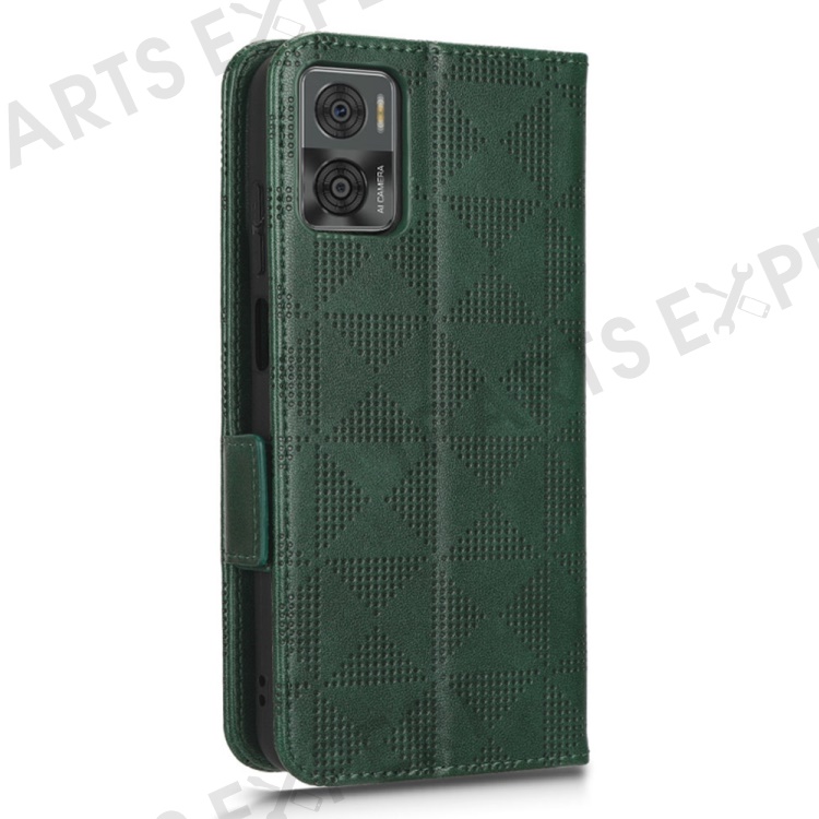 For Motorola Moto E22i 4G / E22 4G Anti-drop Imprinted Triangle Pattern PU Leather Phone Case Stand Magnetic Flip Wallet Cover with Hand Strap - Green