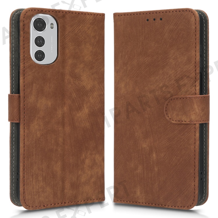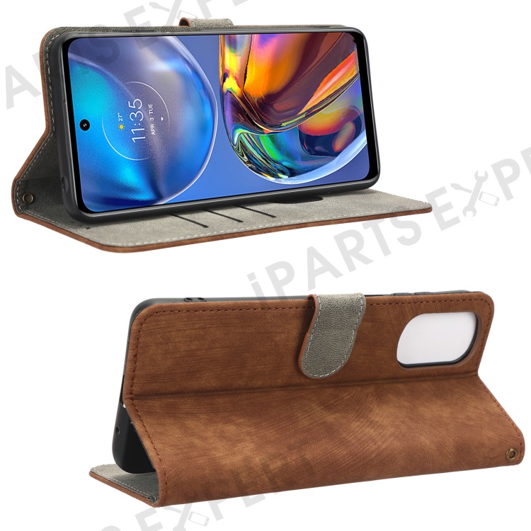 For Motorola Moto E32 4G Cell Phone Case PU Leather RFID Blocking Magnetic Full Protection Phone Cover with Wallet Stand - Brown