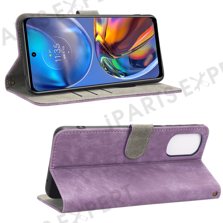 For Motorola Moto E32 4G Cell Phone Case PU Leather RFID Blocking Magnetic Full Protection Phone Cover with Wallet Stand - Purple