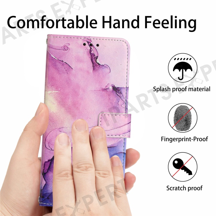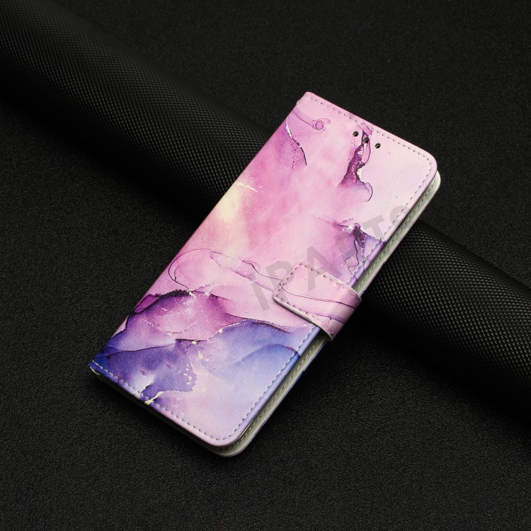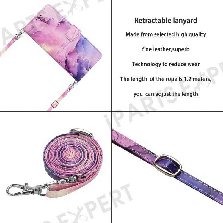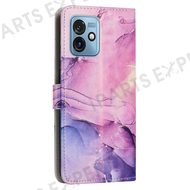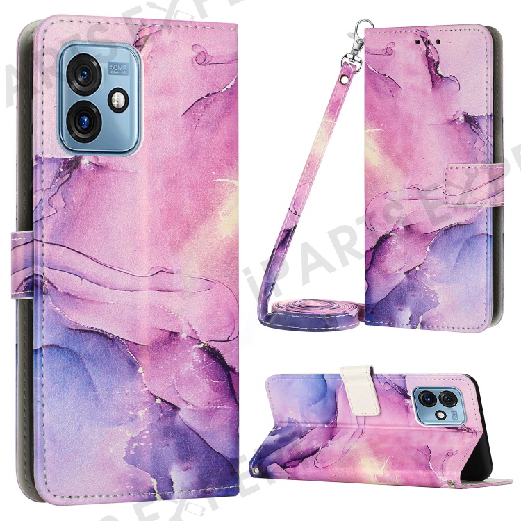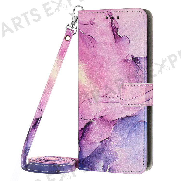 For Motorola Moto G 5G (2023) Marble Pattern Phone Case PU Leather Stand Wallet Cover with Shoulder Strap - Purple