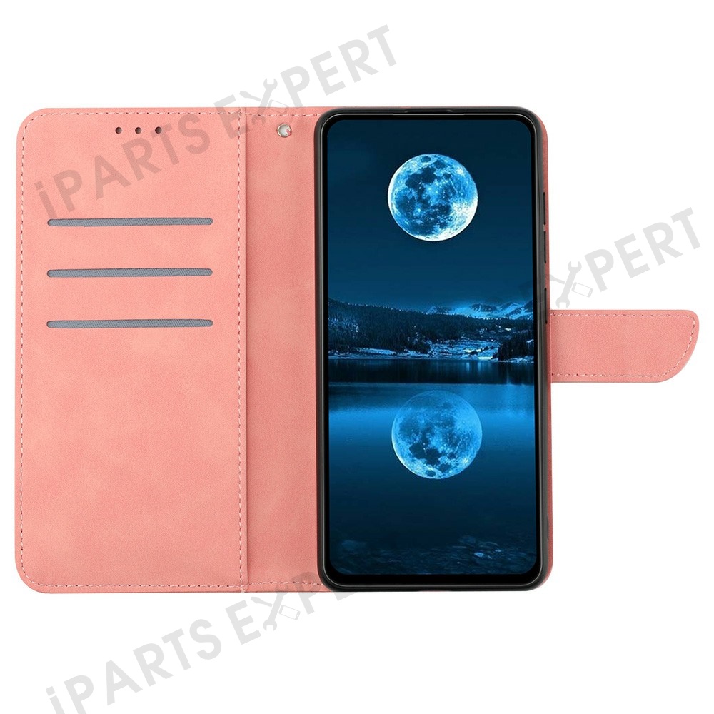 For Motorola Moto G 5G (2025) Case Skin-Touch Lines PU Leather Flip Phone Cover - Pink