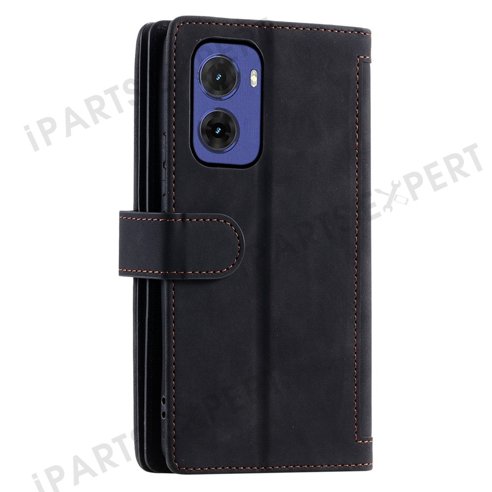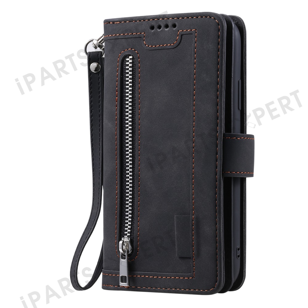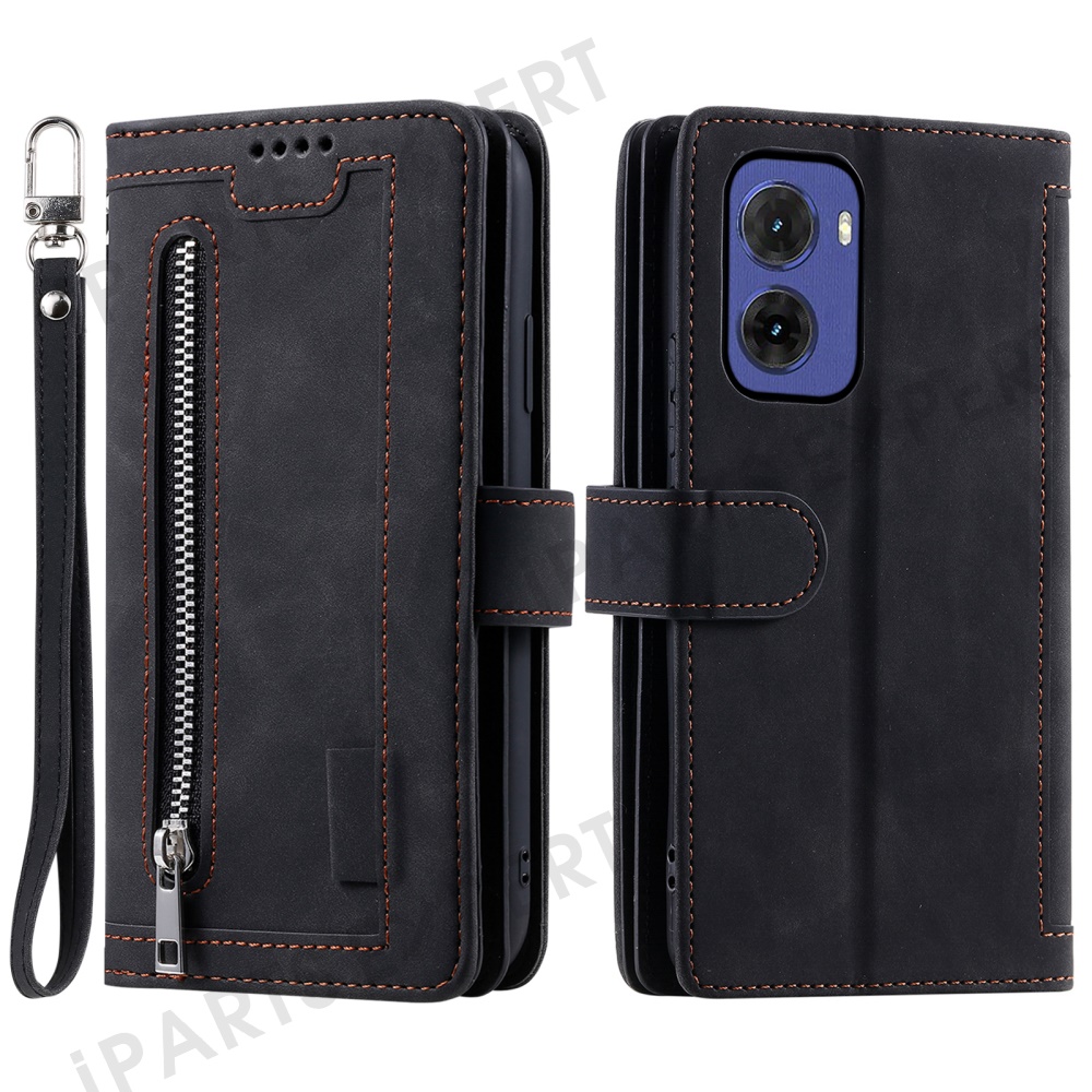 For Motorola Moto G05 4G Case PU Leather Phone Cover with Zipper Wallet 9 Card Slots - Black