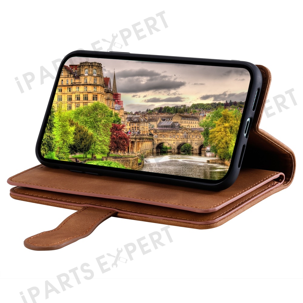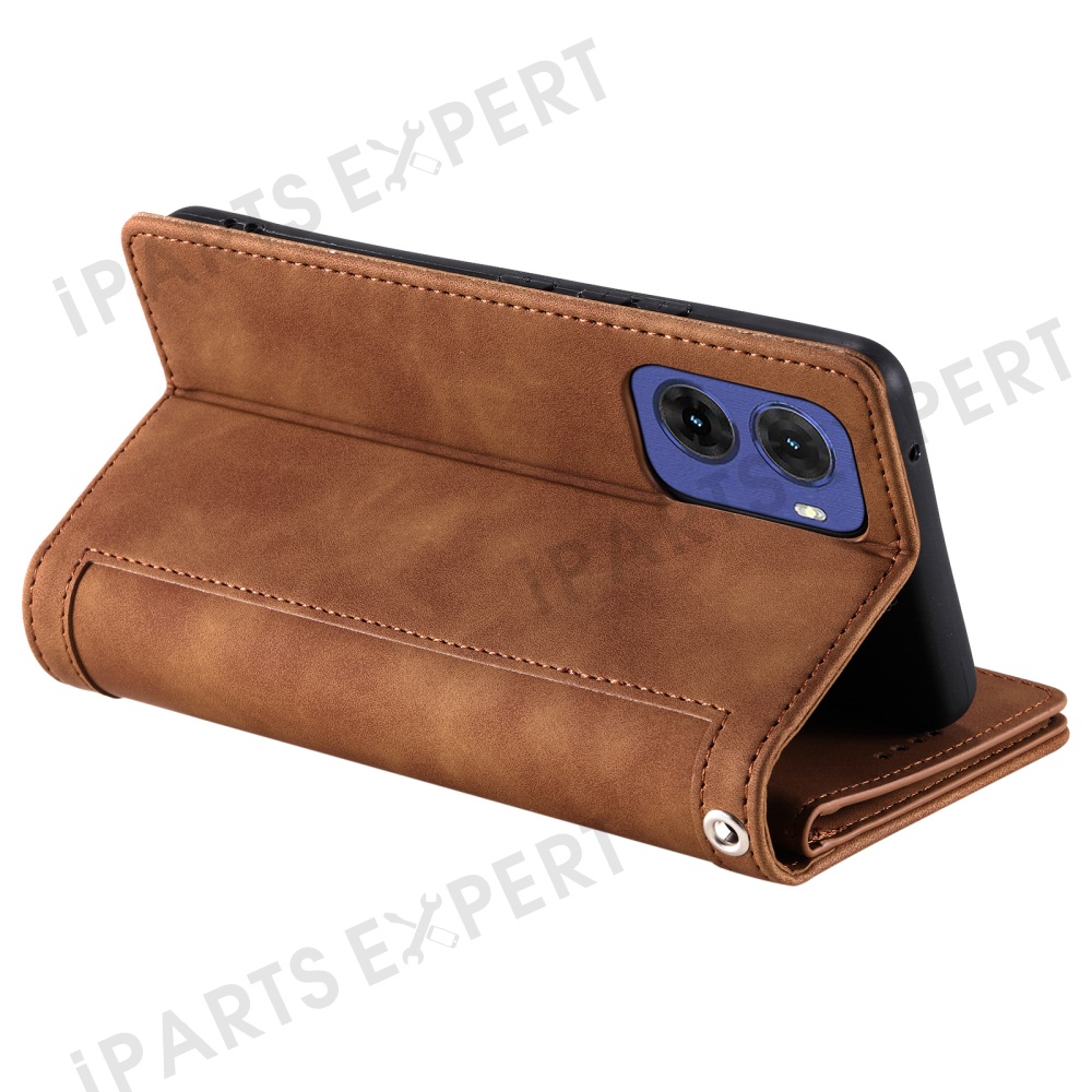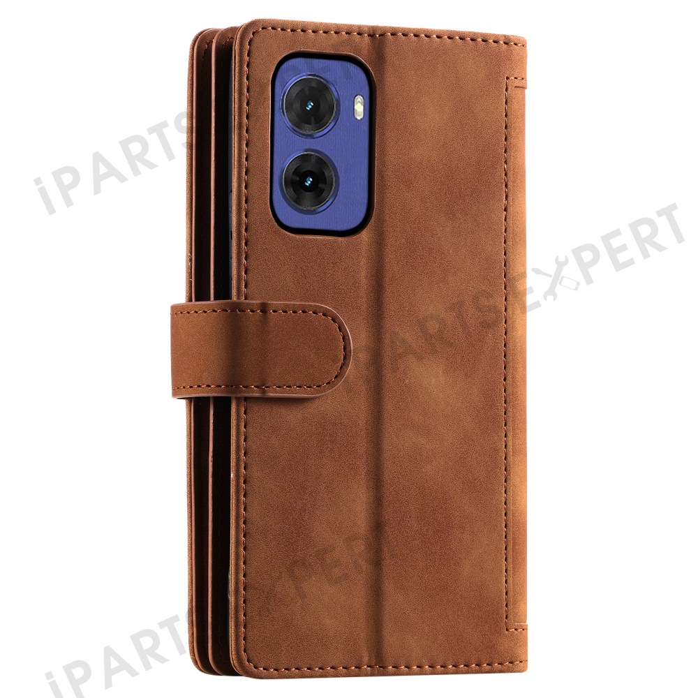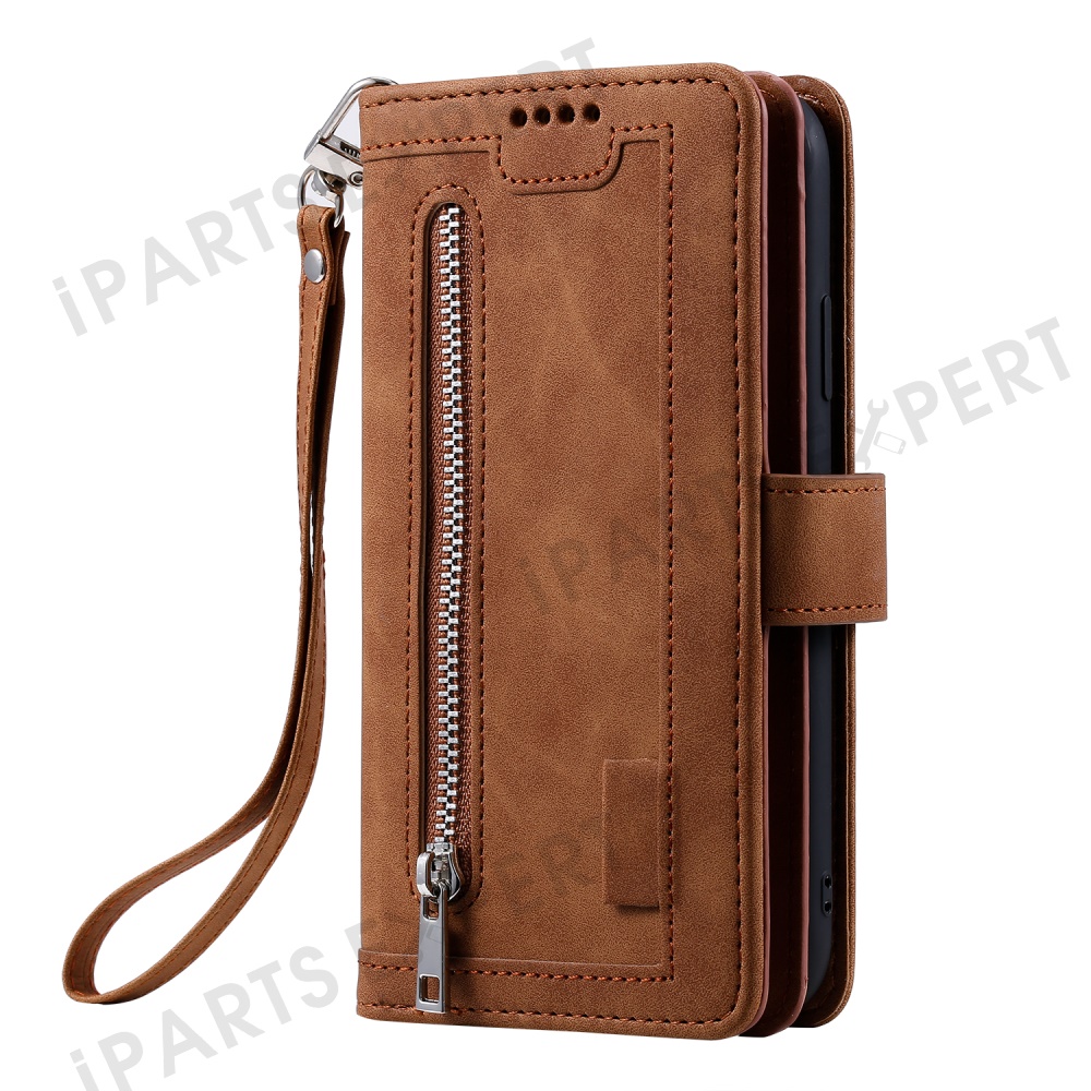 For Motorola Moto G05 4G Case PU Leather Phone Cover with Zipper Wallet 9 Card Slots - Brown