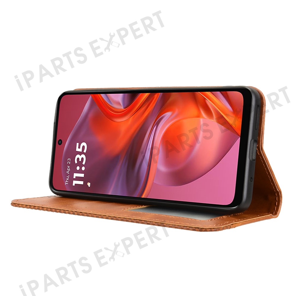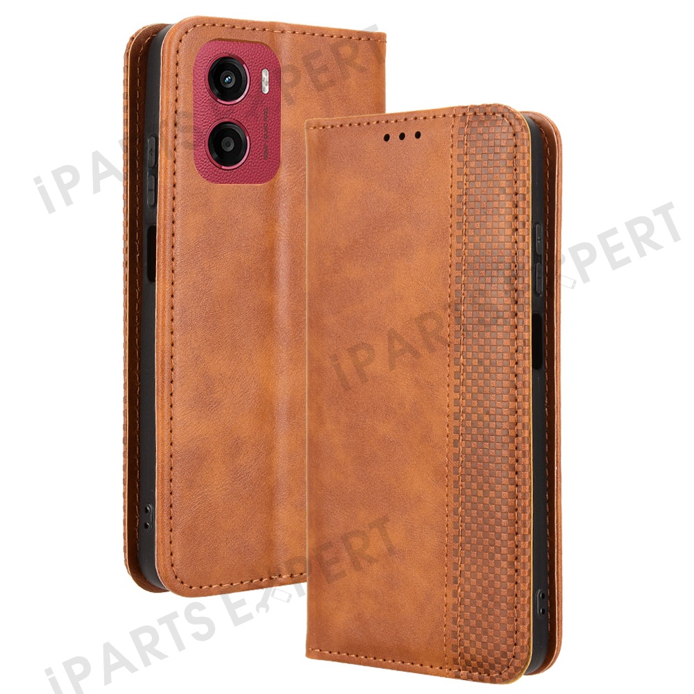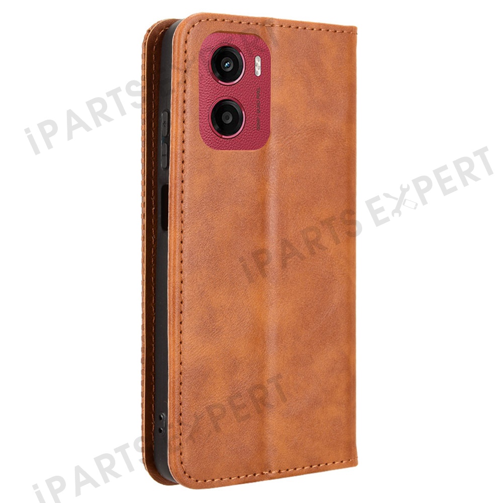 For Motorola Moto G05 4G / E15 4G Leather Case Wallet Stand Retro Texture Phone Cover - Brown