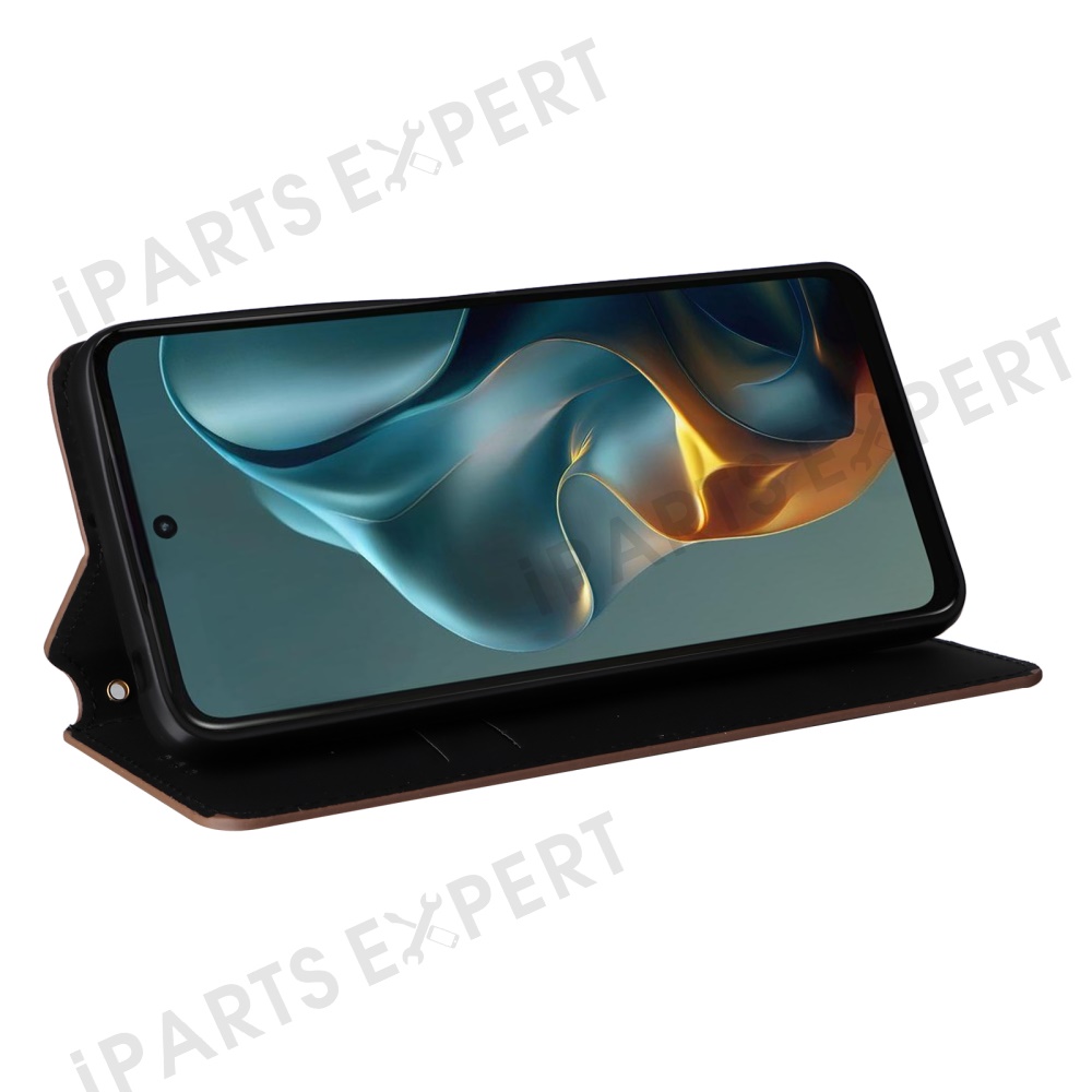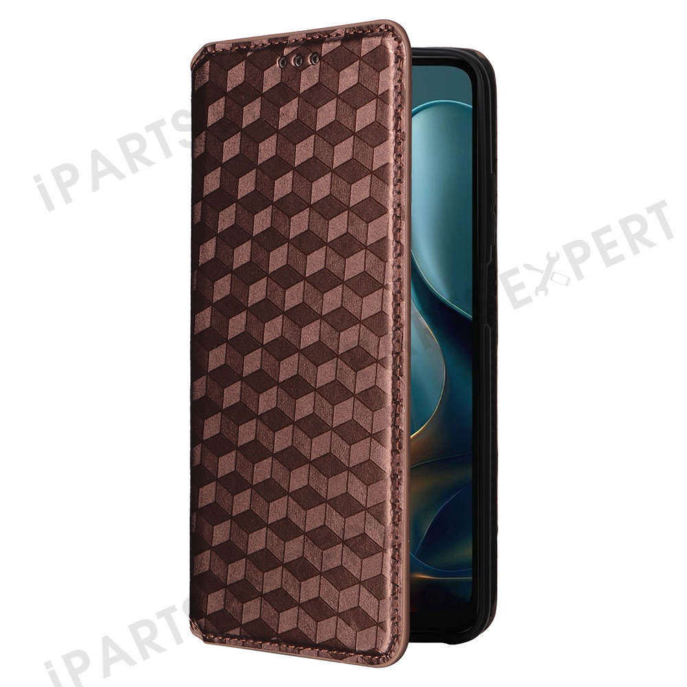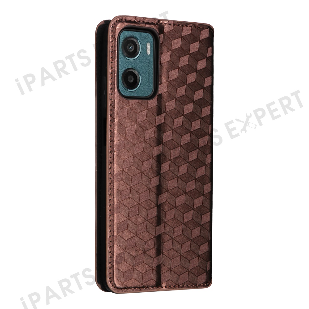 For Motorola Moto G05 4G / E15 4G Wallet Case Rhombus Imprinted Leather Phone Cover - Brown