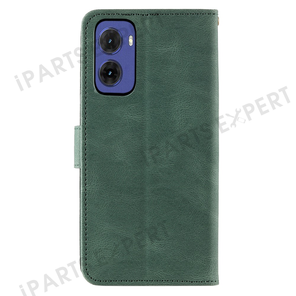 For Motorola Moto G05 4G Leather Case Splicing Stitching Wallet Stand Phone Cover with Strap - Green