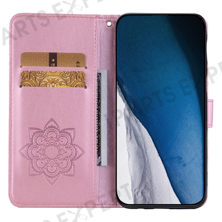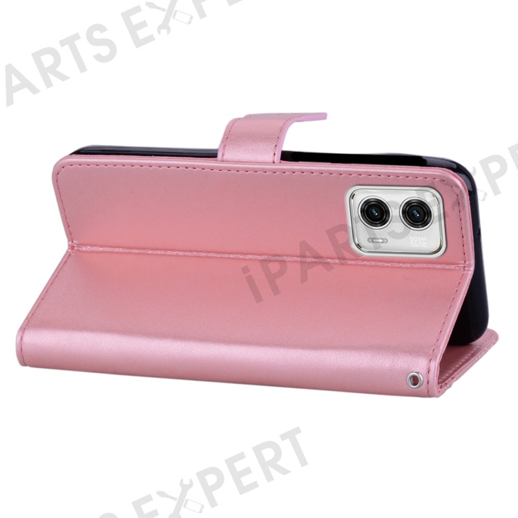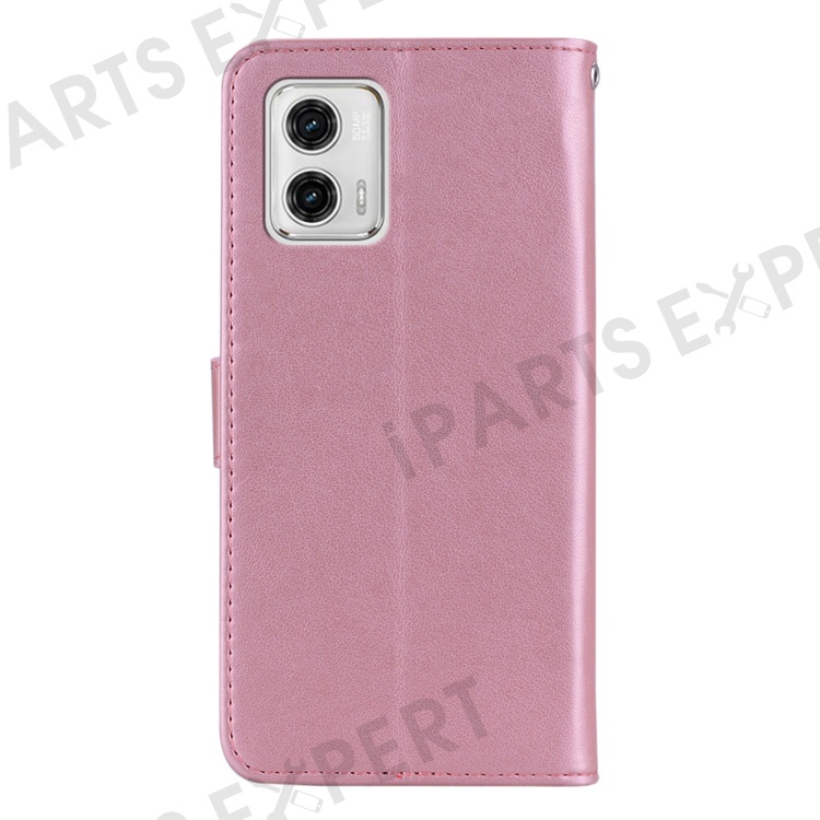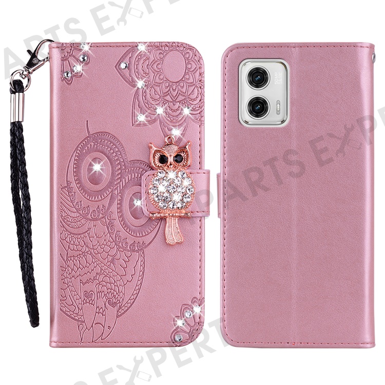 For Motorola Moto G13 4G / G23 4G / G53 5G Rhinestone Imprinted Owl Flower Phone Case PU Leather Stand Flip Folio Wallet Cover - Rose Gold