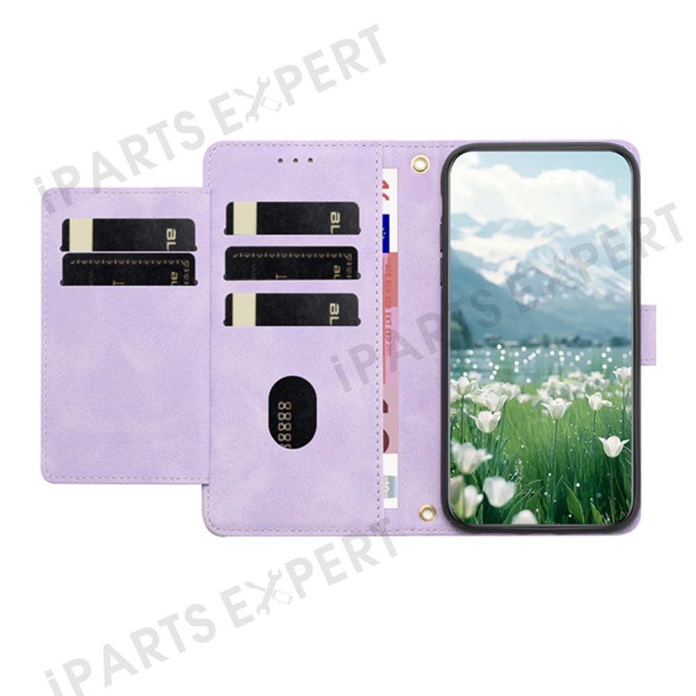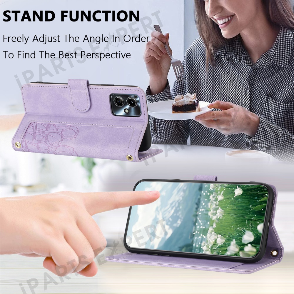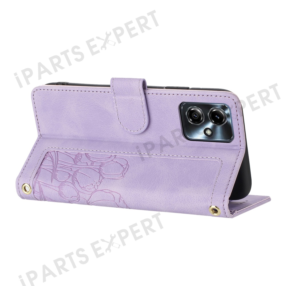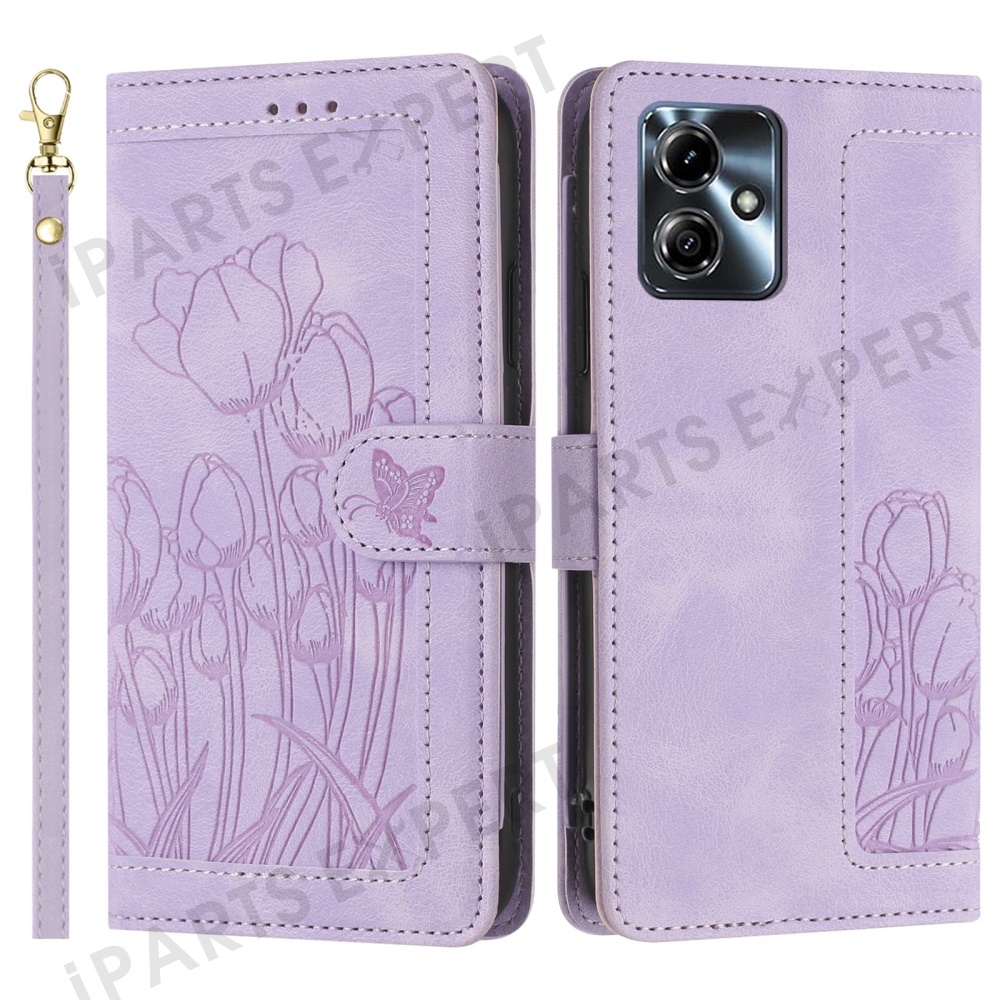 For Motorola Moto G14 4G Tulip Leather Case Phone Cover with 5 Card Slots Wallet - Purple