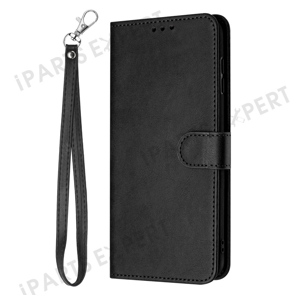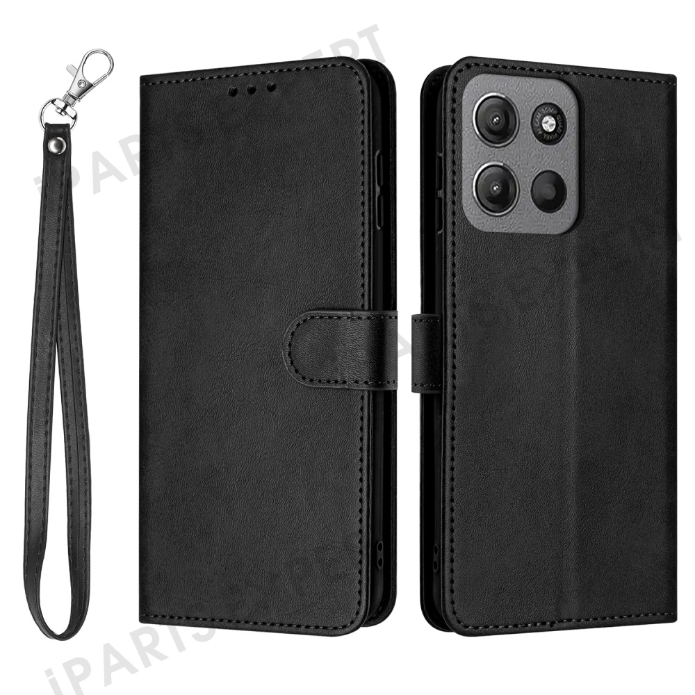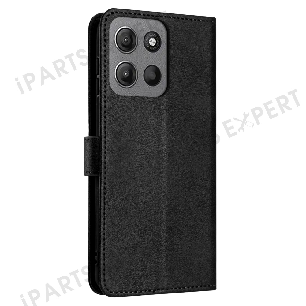 For Motorola Moto G17 Power 4G / G17 4G / G15 4G Case Flip Stand PU Leather Wallet Phone Cover Calf Texture - Black