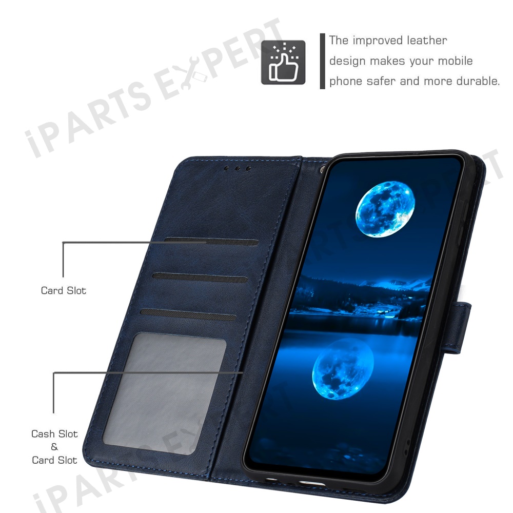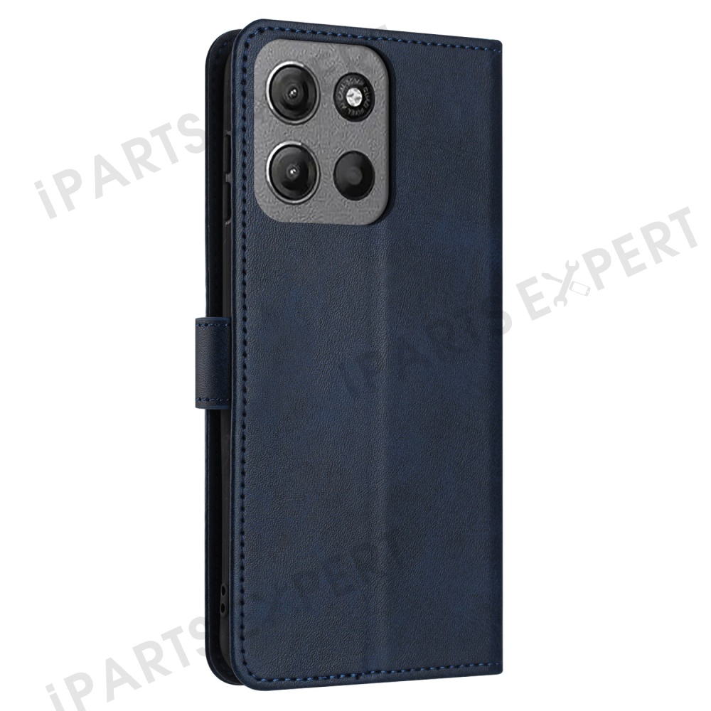 For Motorola Moto G17 Power 4G / G17 4G / G15 4G Case Flip Stand PU Leather Wallet Phone Cover Calf Texture - Sapphire
