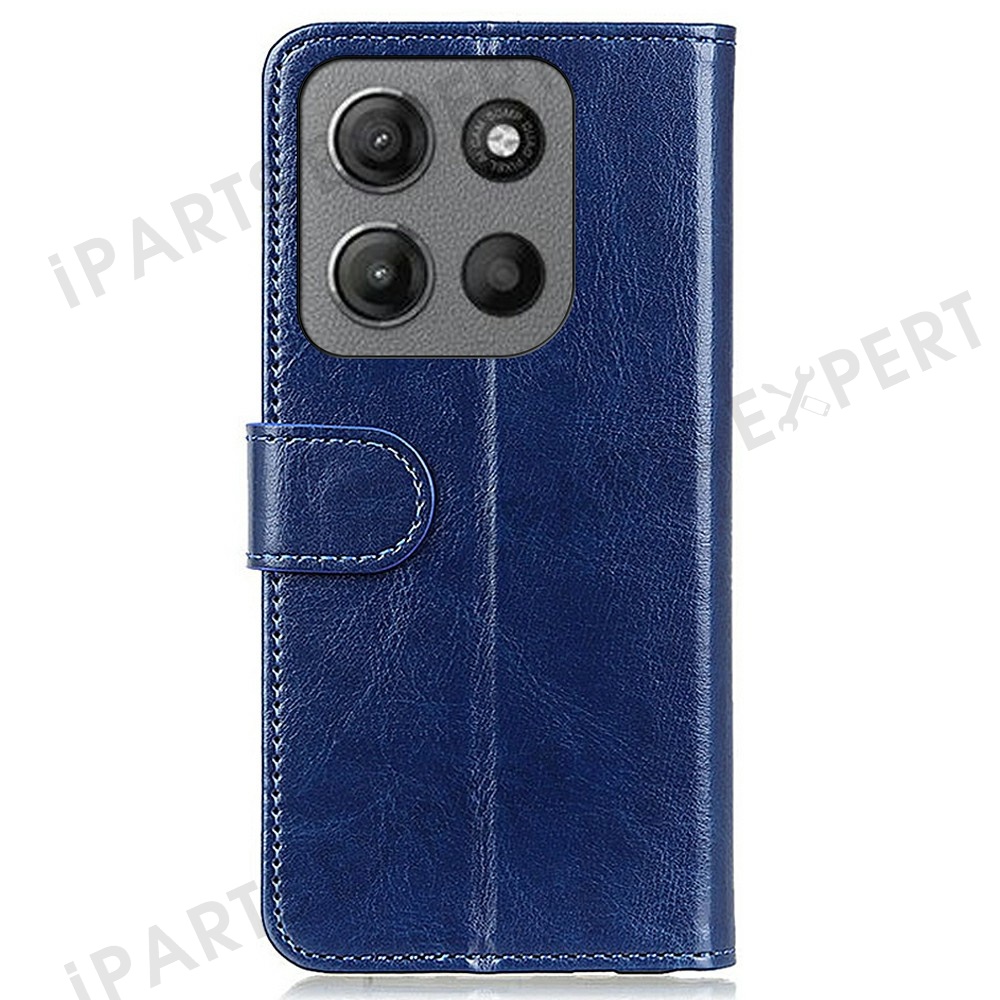 For Motorola Moto G15 4G / G05 4G Case Crazy Horse Texture PU Leather Phone Stand Cover - Blue