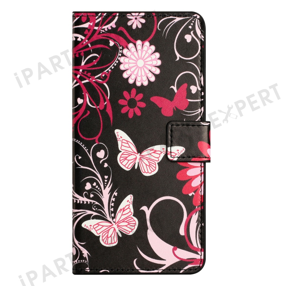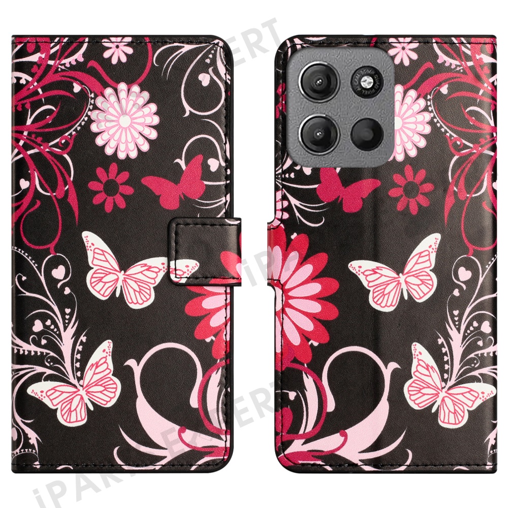 For Motorola Moto G17 Power 4G / G17 4G / G15 4G / G15 Power 4G Case Pattern Print PU Leather Wallet Phone Cover - Black Butterfly