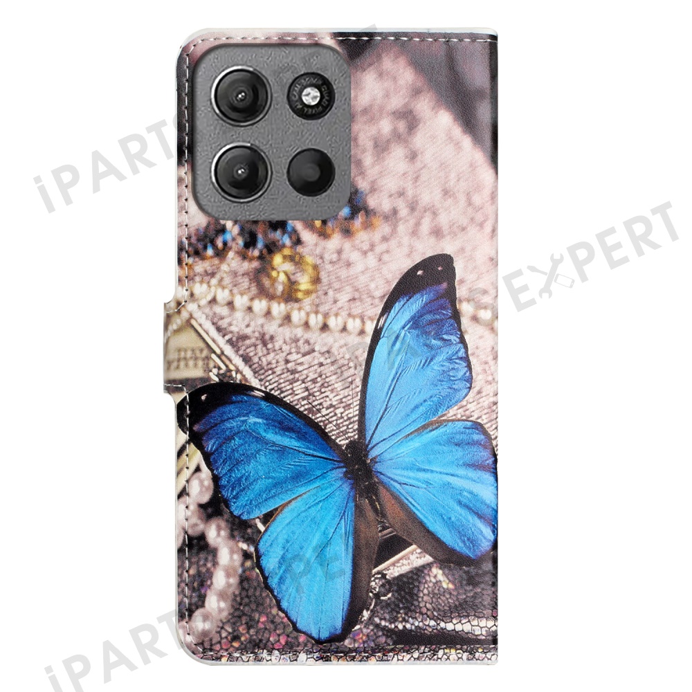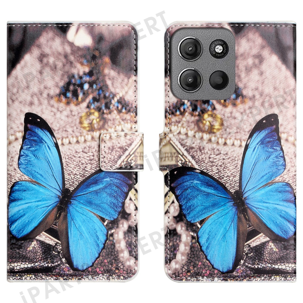 For Motorola Moto G17 Power 4G / G17 4G / G15 4G / G15 Power 4G Case Pattern Print PU Leather Wallet Phone Cover - Blue Butterfly