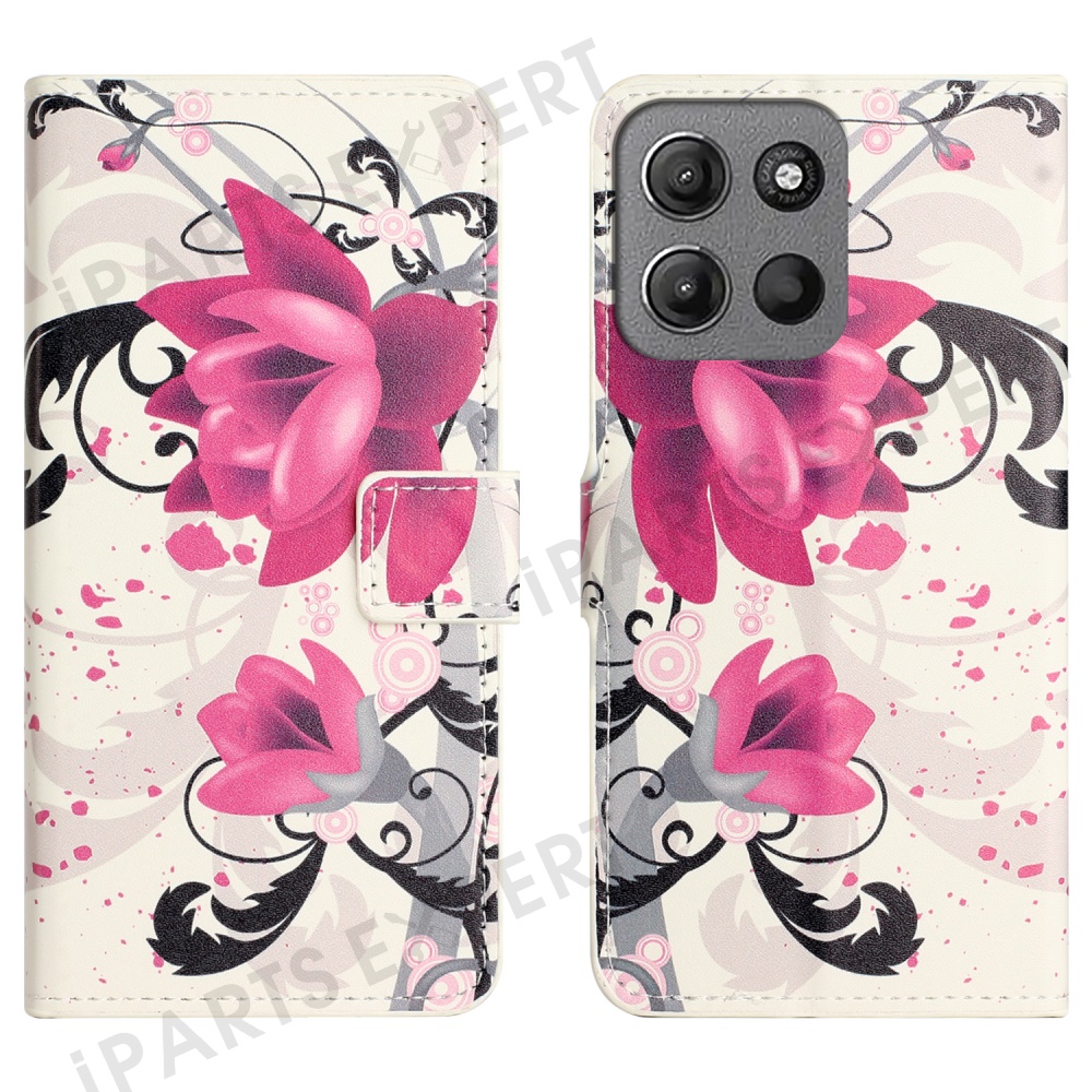 For Motorola Moto G17 Power 4G / G17 4G / G15 4G / G15 Power 4G Case Pattern Print PU Leather Wallet Phone Cover - Lotus