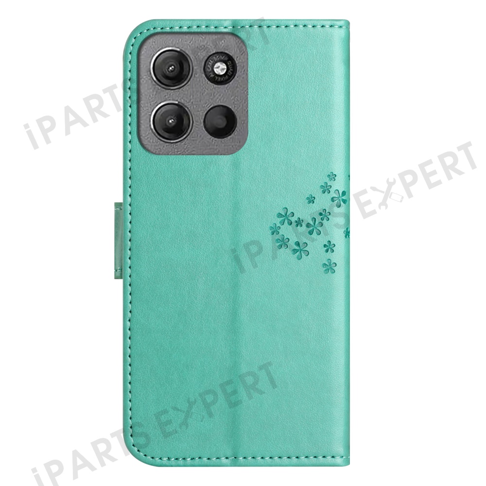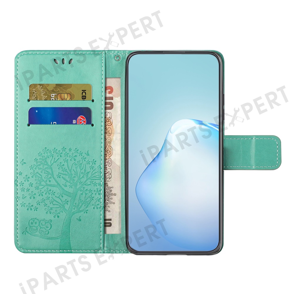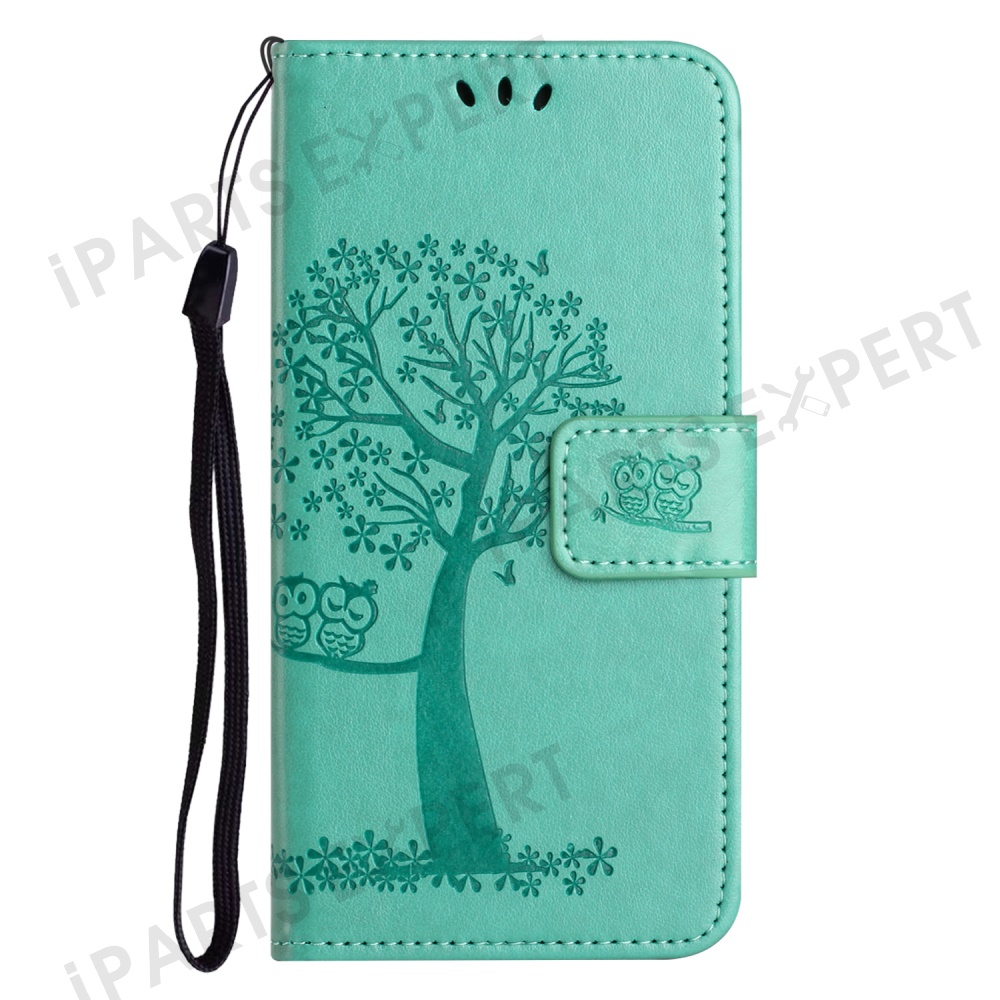 For Motorola Moto G15 4G / G15 Power 4G Case PU Leather Owl Tree Imprinted Wallet Phone Cover - Cyan