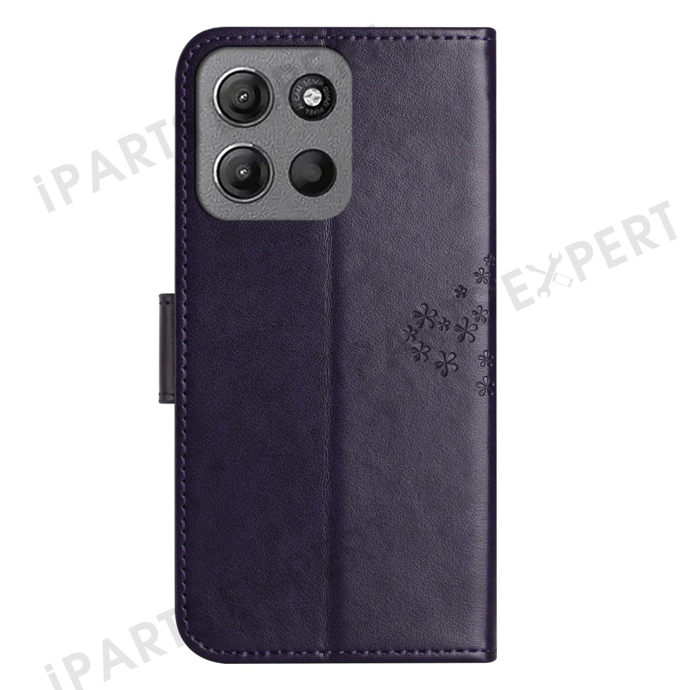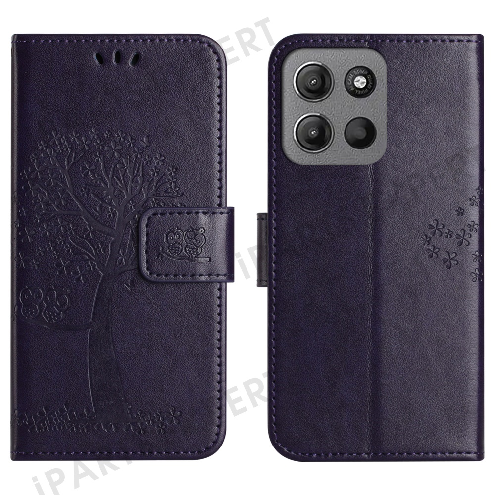 For Motorola Moto G15 4G / G15 Power 4G Case PU Leather Owl Tree Imprinted Wallet Phone Cover - Dark Blue