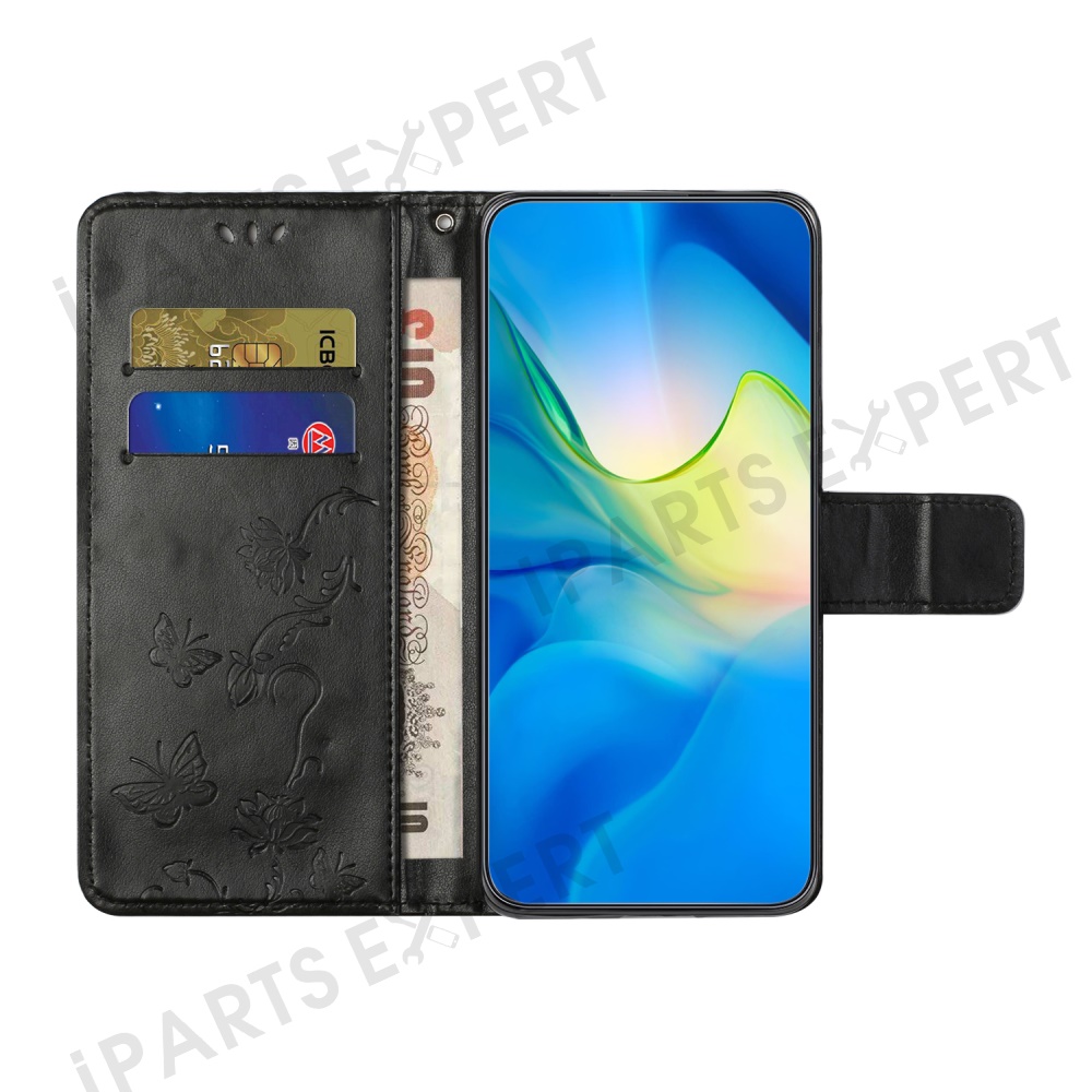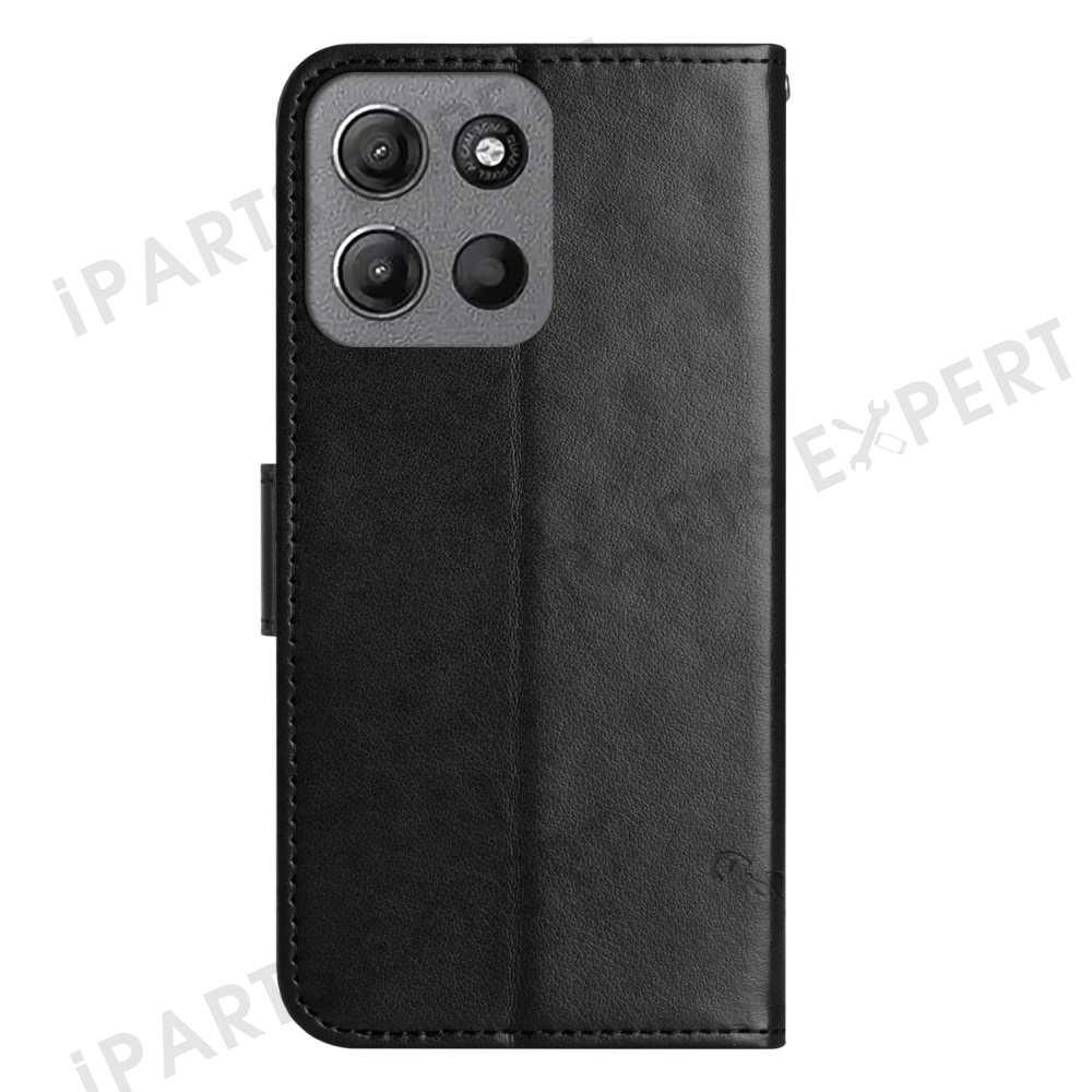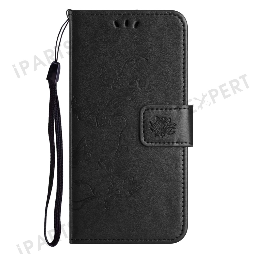 For Motorola Moto G15 4G / G15 Power 4G Case Wallet Stand Imprinted Butterfly Flower PU Leather Phone Cover - Black