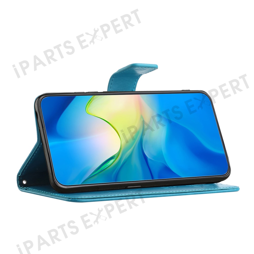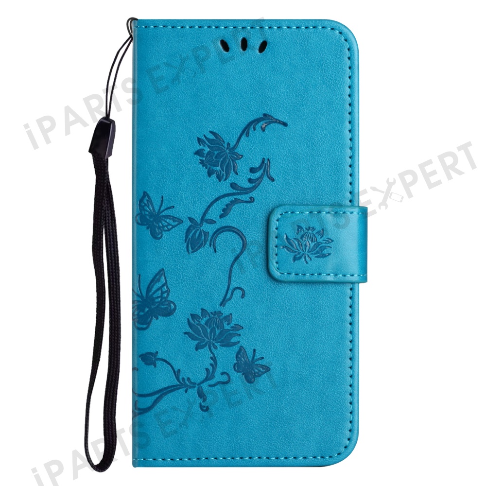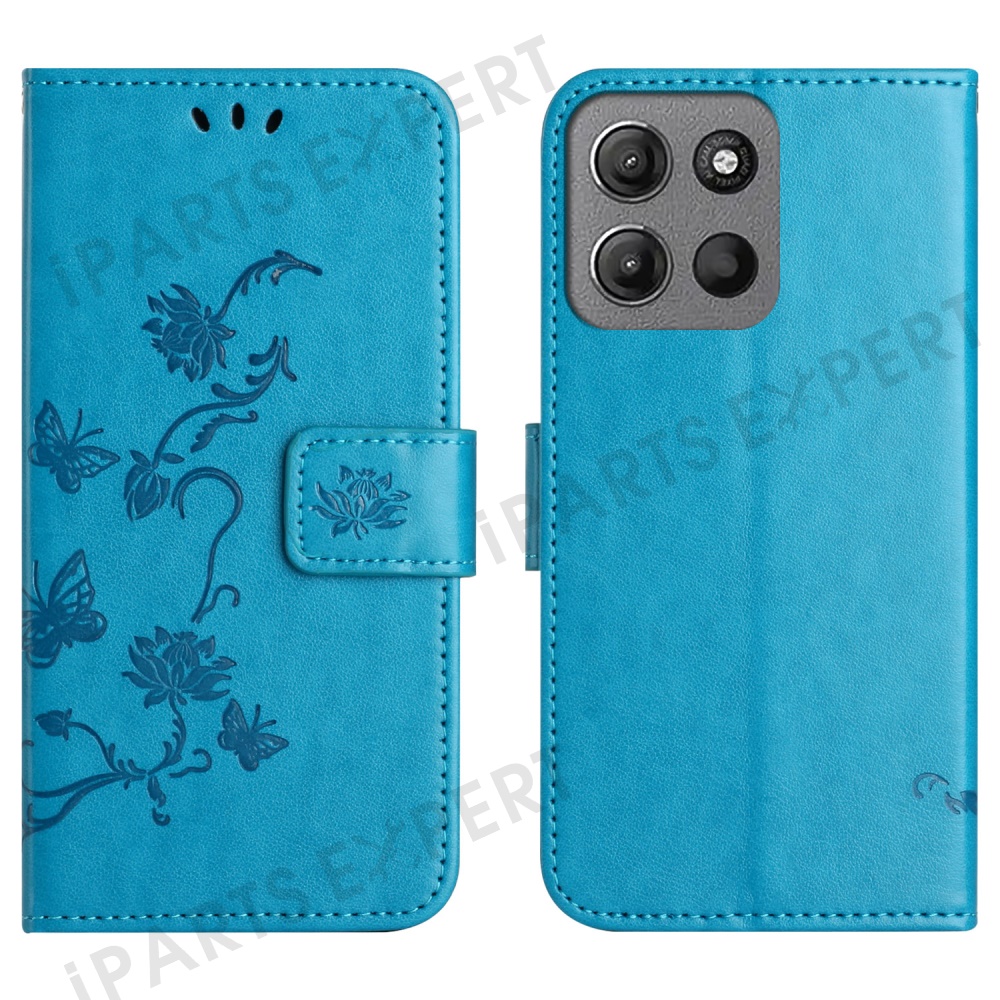 For Motorola Moto G15 4G / G15 Power 4G Case Wallet Stand Imprinted Butterfly Flower PU Leather Phone Cover - Blue