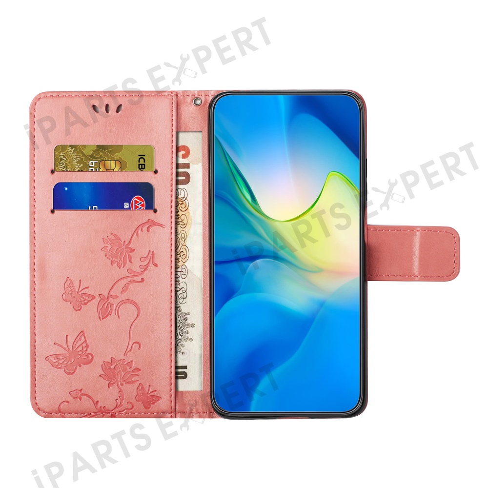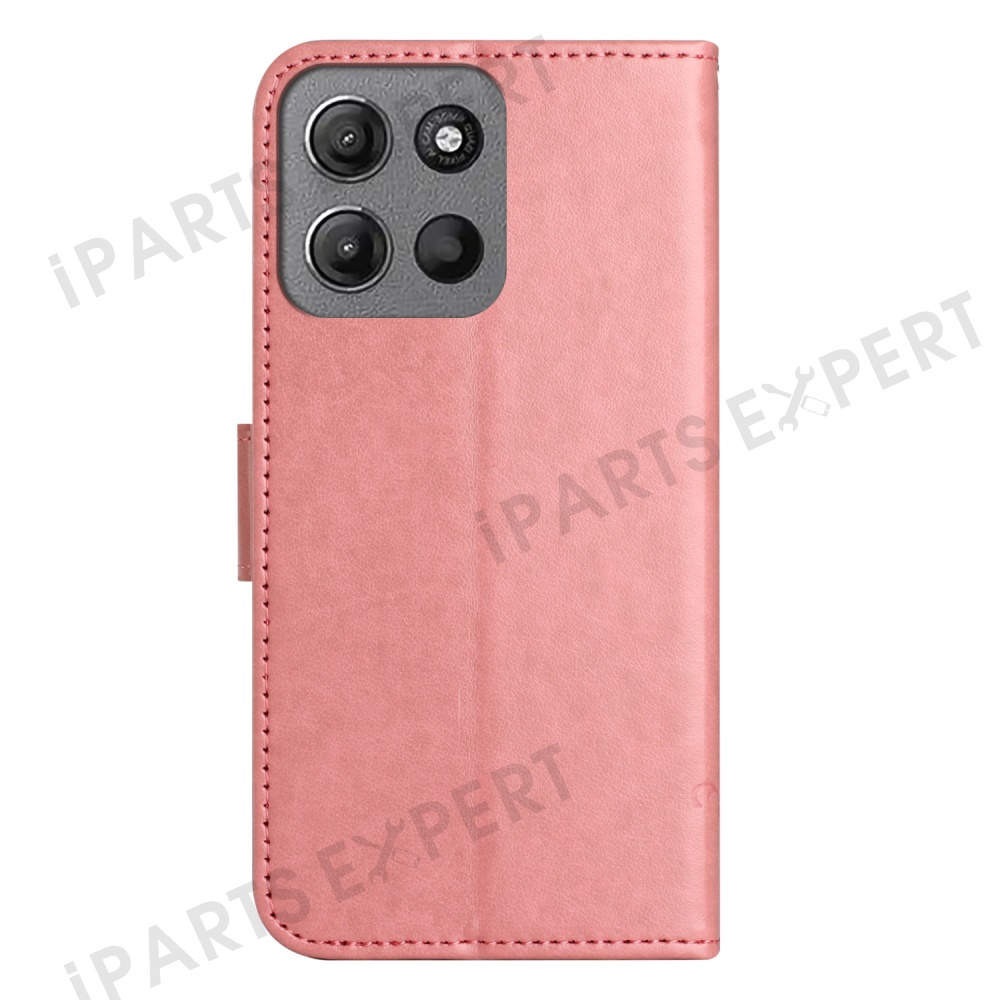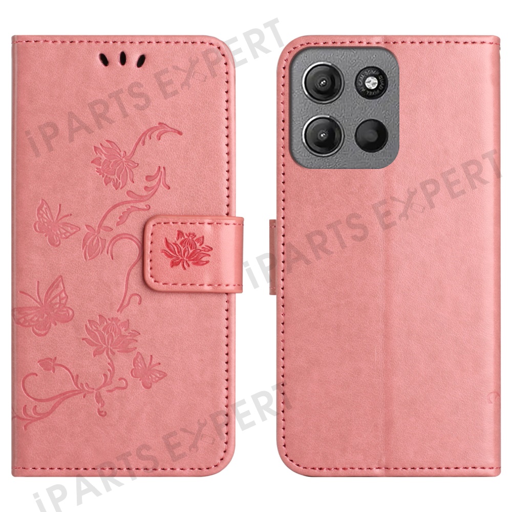 For Motorola Moto G15 4G / G15 Power 4G Case Wallet Stand Imprinted Butterfly Flower PU Leather Phone Cover - Pink