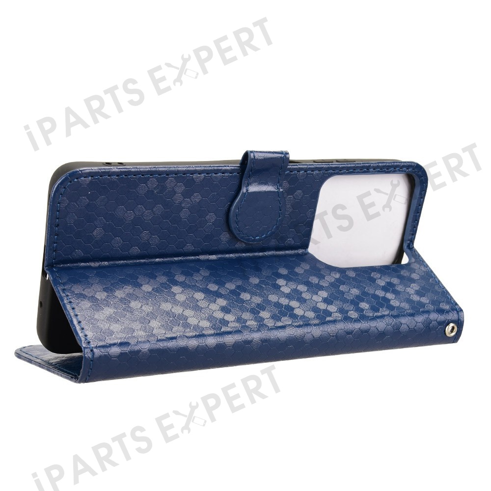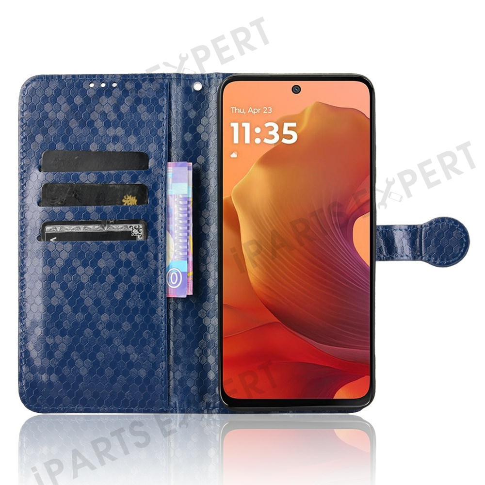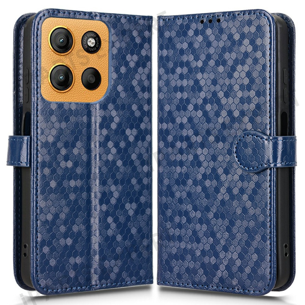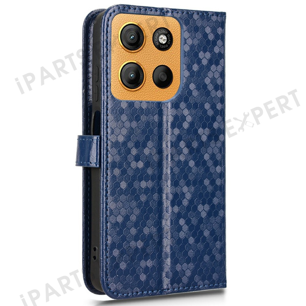 For Motorola Moto G17 Power 4G / G17 4G / G15 4G / G15 Power 4G Wallet Case Dot Pattern Imprint PU Leather Phone Cover - Dark Blue