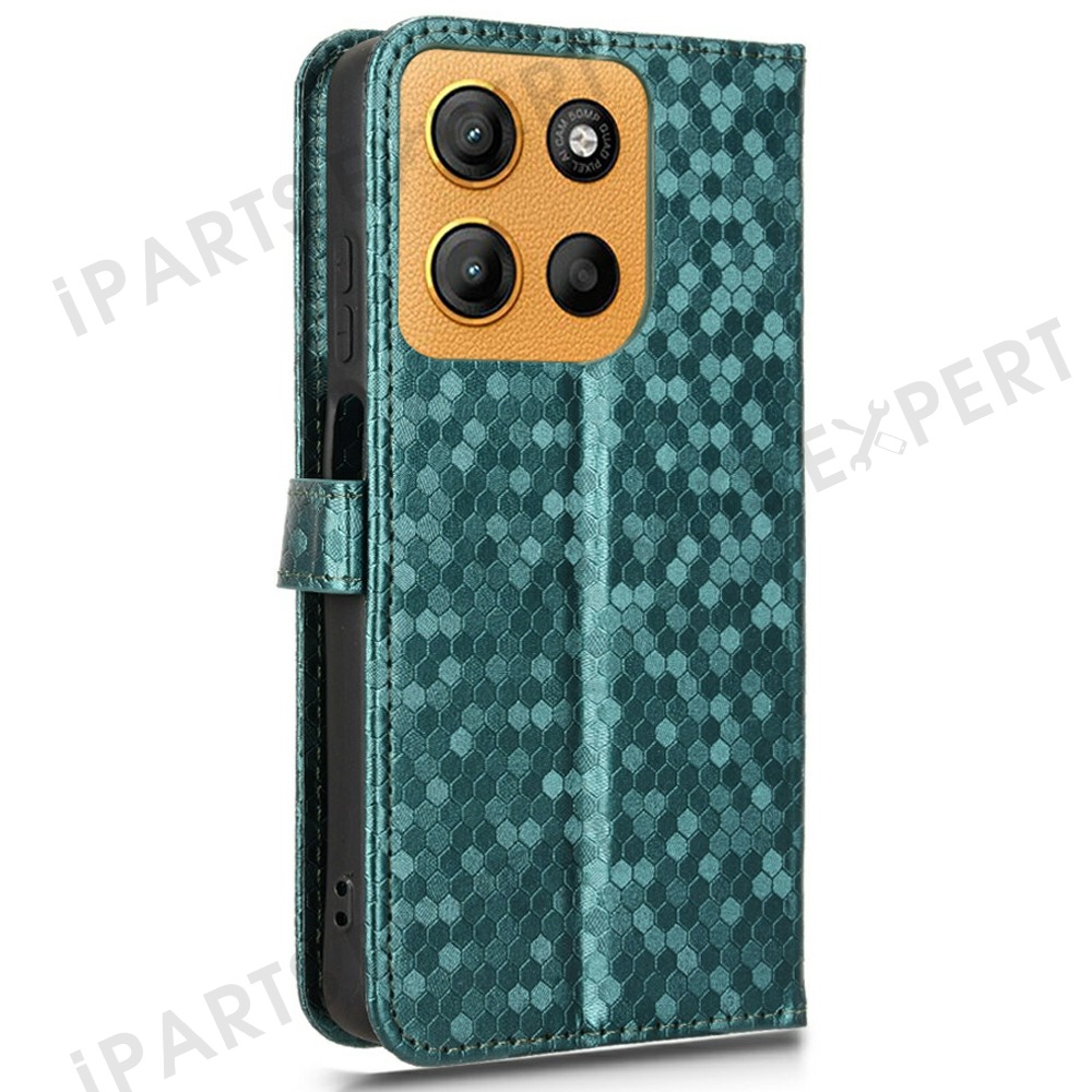 For Motorola Moto G17 Power 4G / G17 4G / G15 4G / G15 Power 4G Wallet Case Dot Pattern Imprint PU Leather Phone Cover - Green