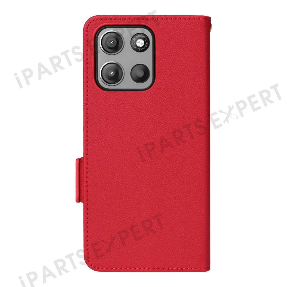 For Motorola Moto G15 Power 4G / G15 4G Case with Wrist Strap Litchi Texture PU Leather Wallet Phone Cover - Red