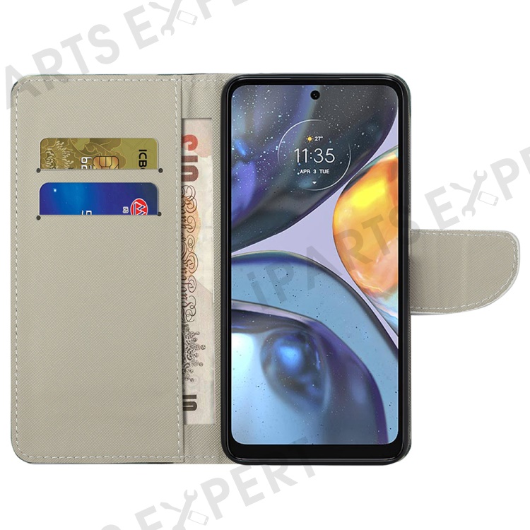 For Motorola Moto G22 Pattern Printing PU Leather Magnetic Flip Cover Stand Wallet Cross Texture Soft Inner TPU Book Case - Sparkling Butterflies