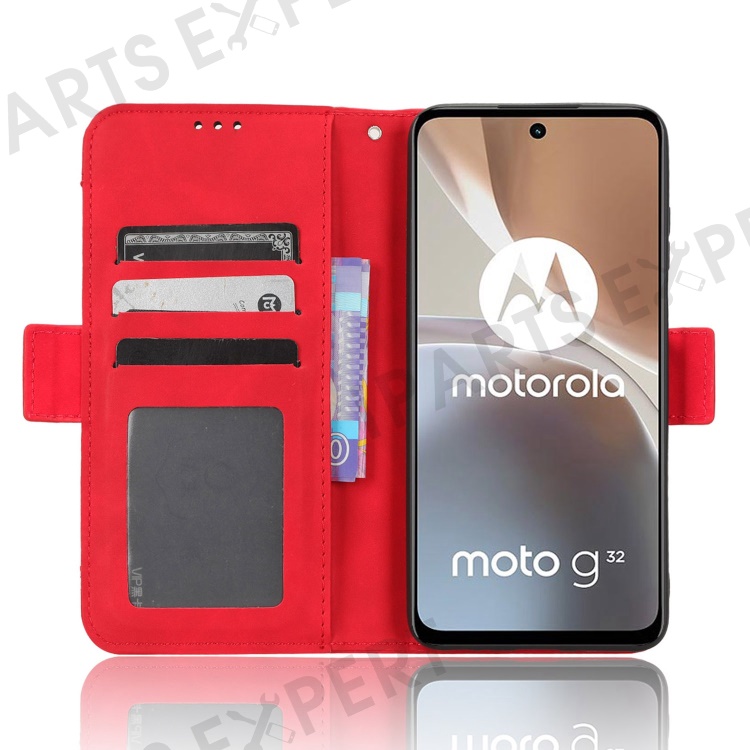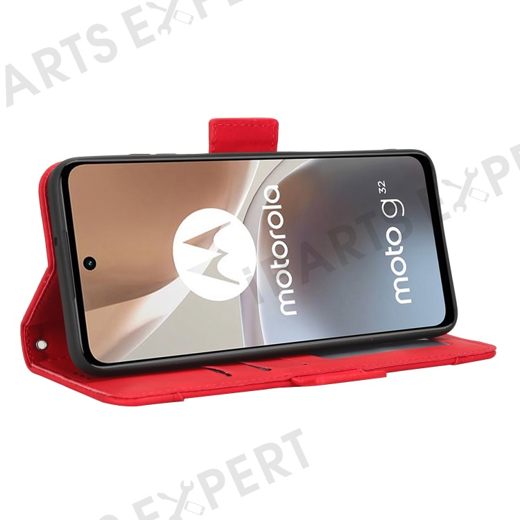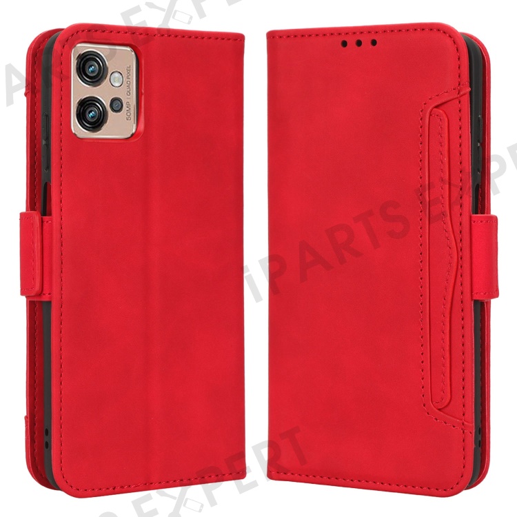 For Motorola Moto G32 4G Multiple Card Slots PU Leather Flip Stand Wallet Case Dual Magnetic Clasp Phone Cover - Red