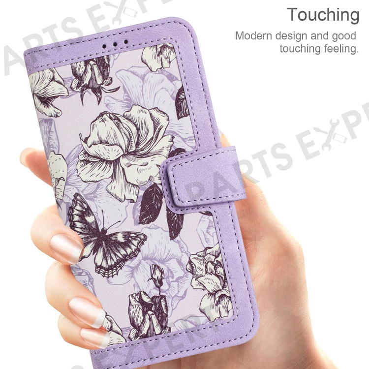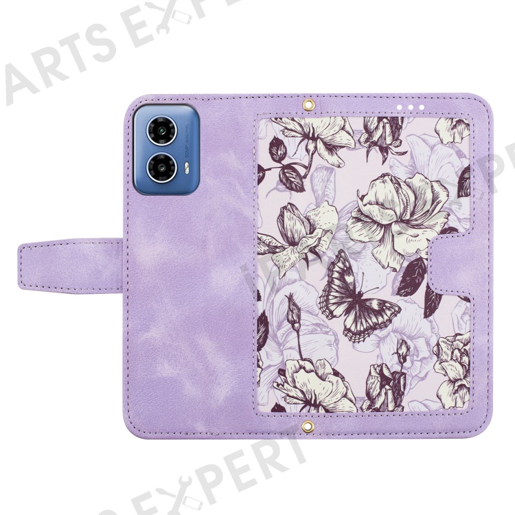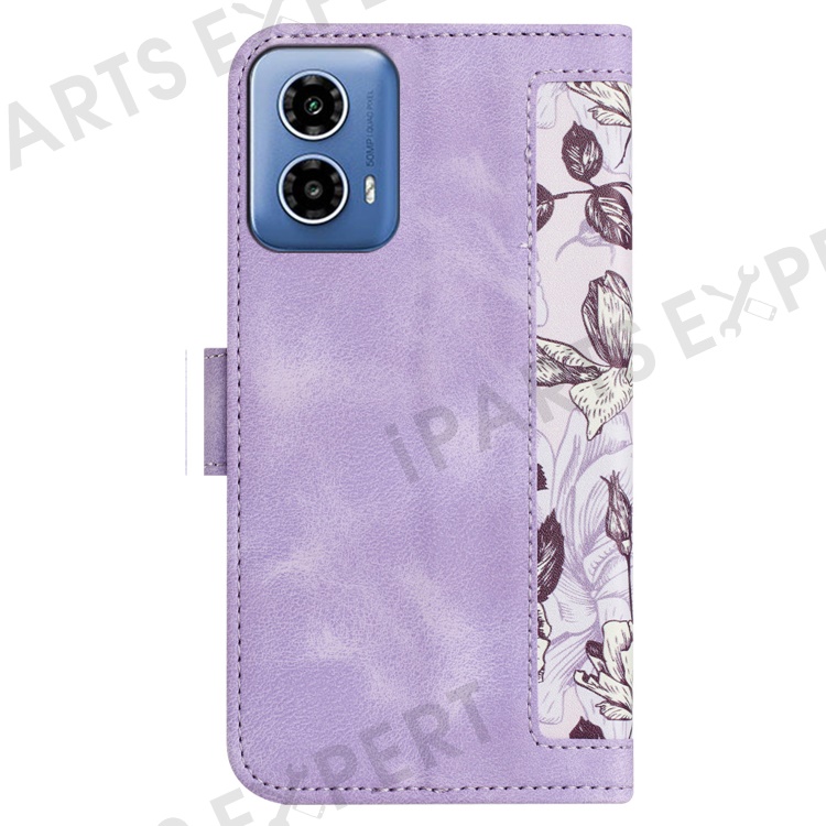 For Motorola Moto G45 5G / G34 5G Case Stand Function Flower Pattern PU Leather Phone Cover - Light Purple