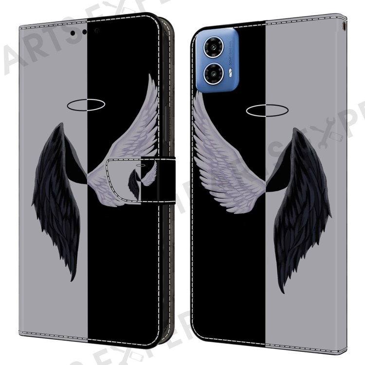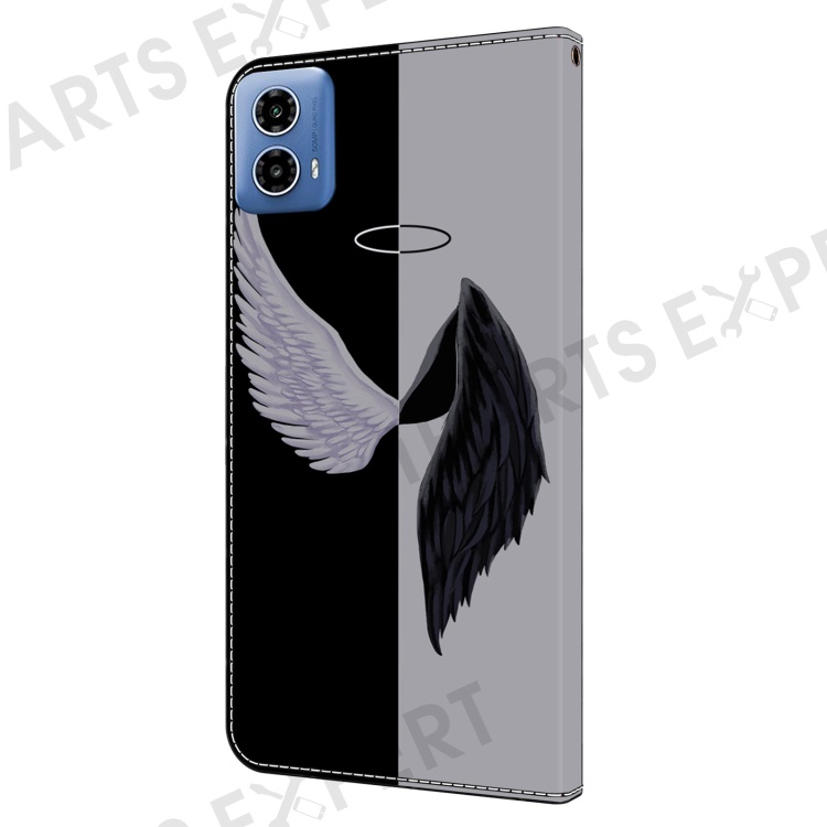 For Motorola Moto G45 5G / G34 5G Case PU Leather 3D Pattern Wallet Phone Cover with Standing Function - Black / White Wings