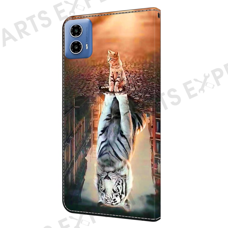 For Motorola Moto G45 5G / G34 5G Case PU Leather 3D Pattern Wallet Phone Cover with Standing Function - Cat and Tiger