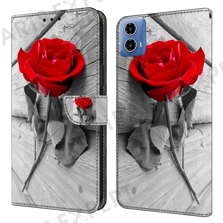 For Motorola Moto G45 5G / G34 5G Case PU Leather 3D Pattern Wallet Phone Cover with Standing Function - Rose