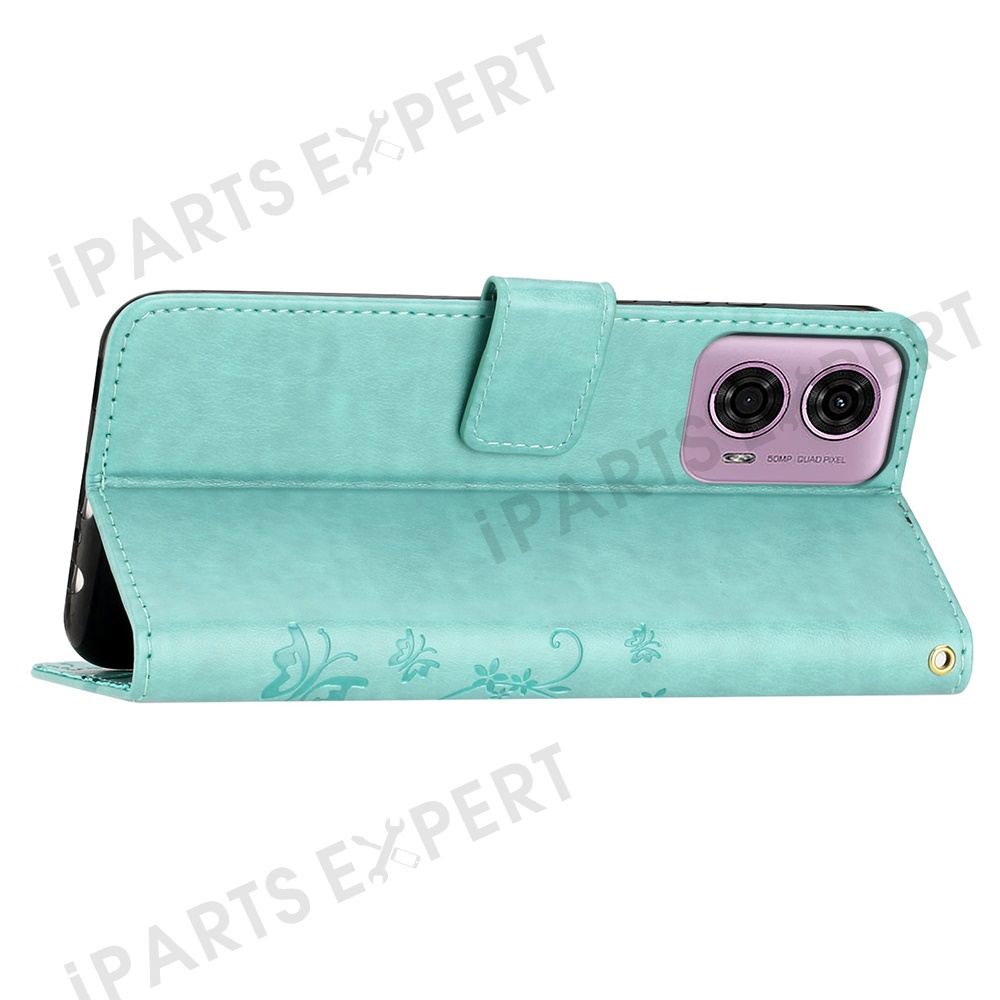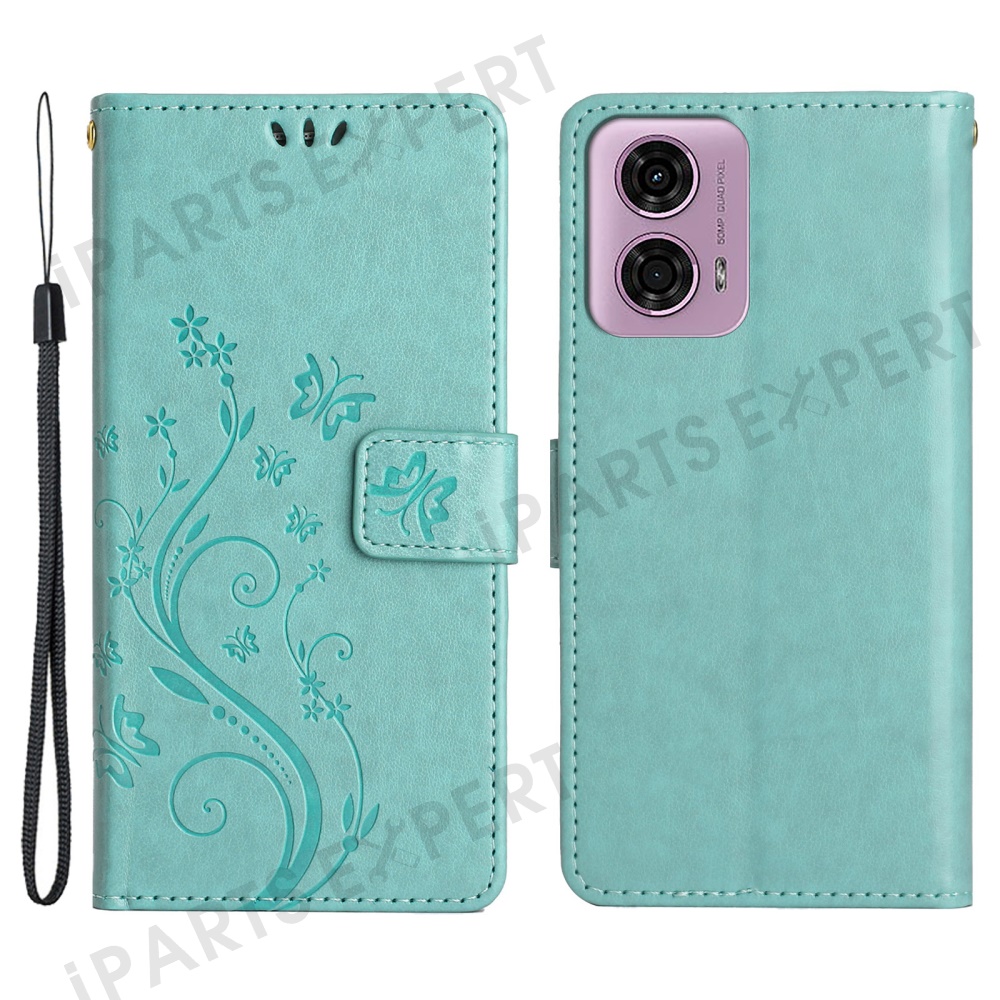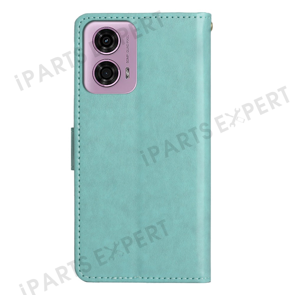 For Motorola Moto G34 5G Case PU Leather Phone Wallet Cover with Strap - Baby Blue