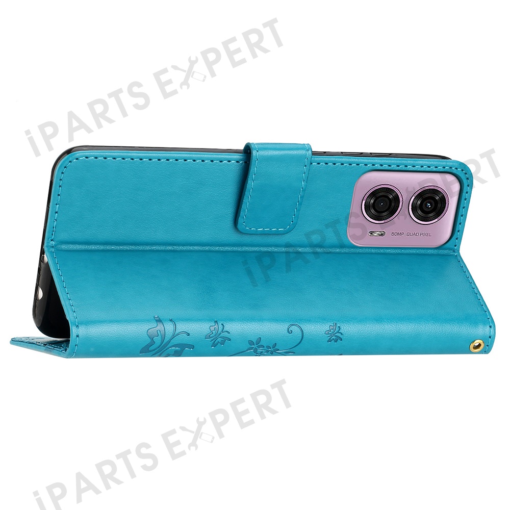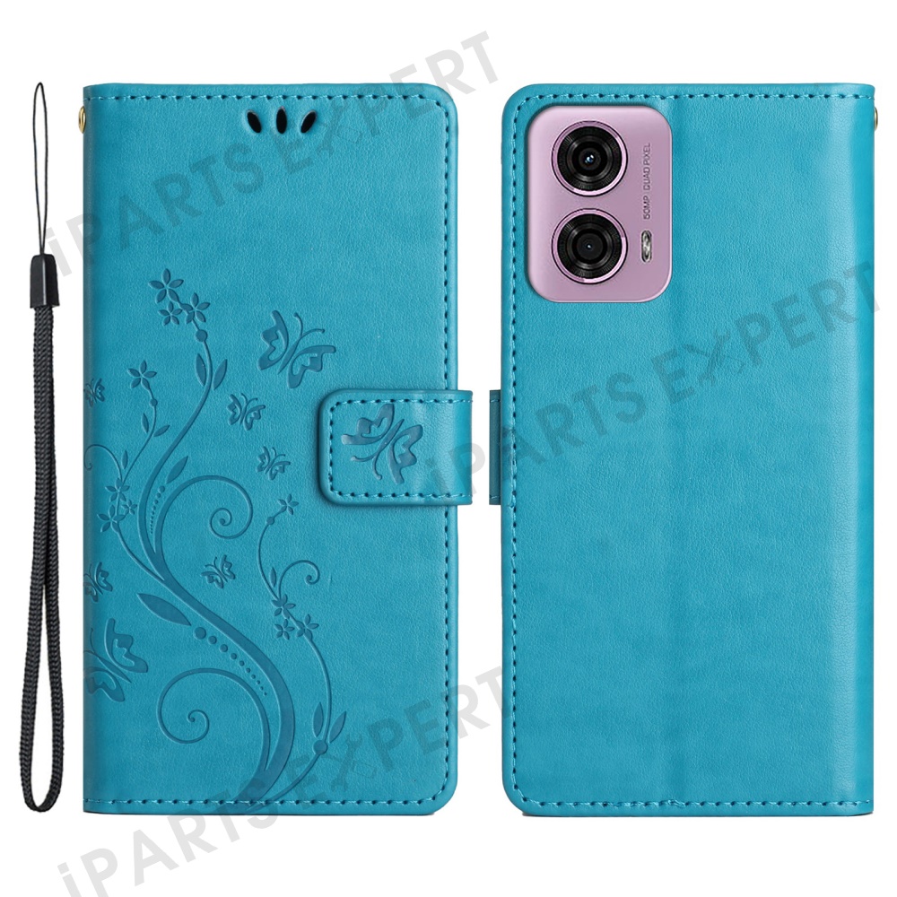 For Motorola Moto G34 5G Case PU Leather Phone Wallet Cover with Strap - Blue