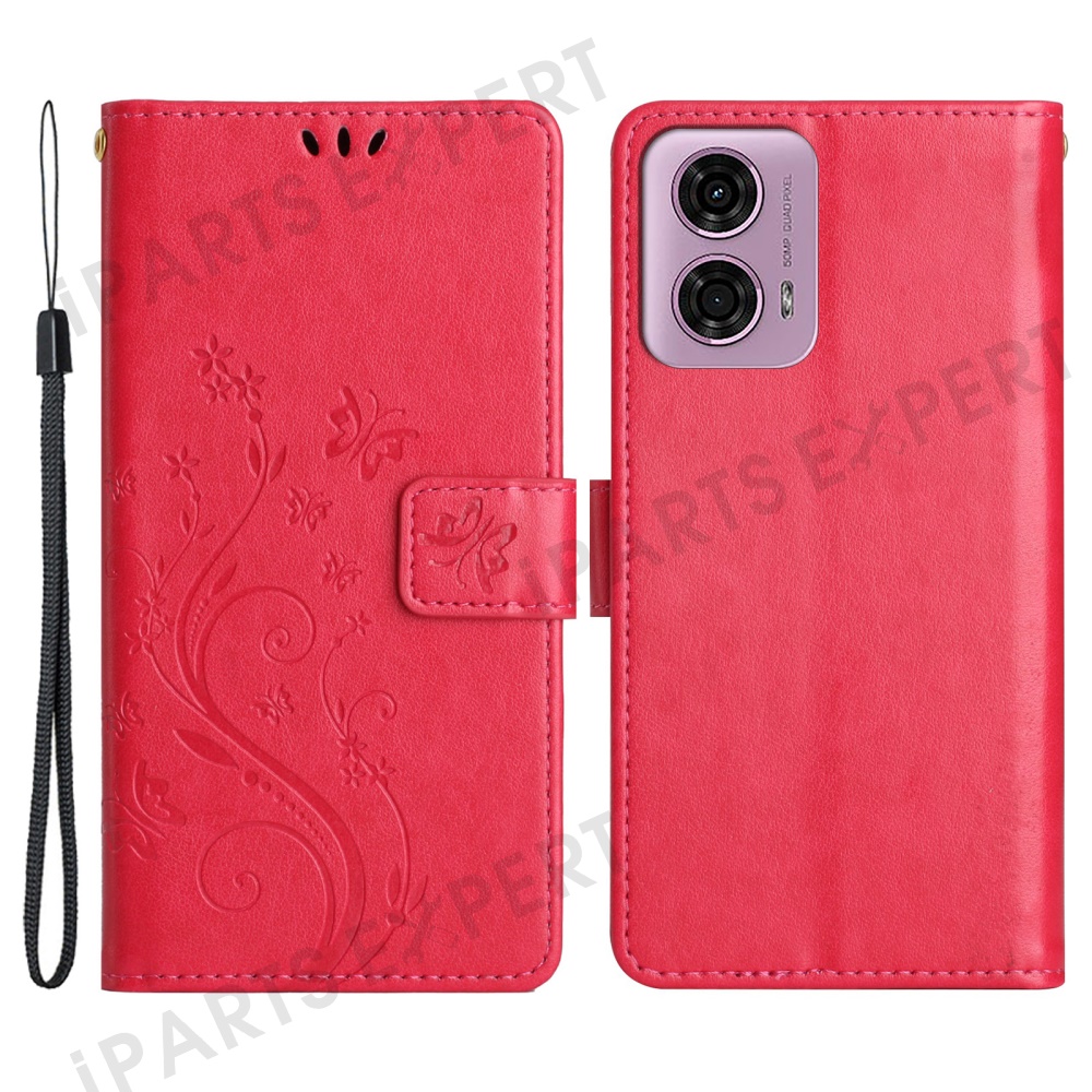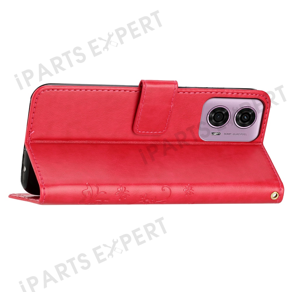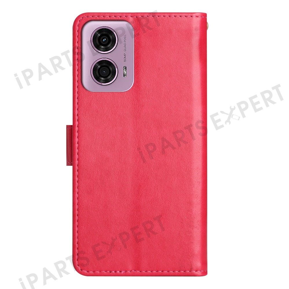 For Motorola Moto G34 5G Case PU Leather Phone Wallet Cover with Strap - Red