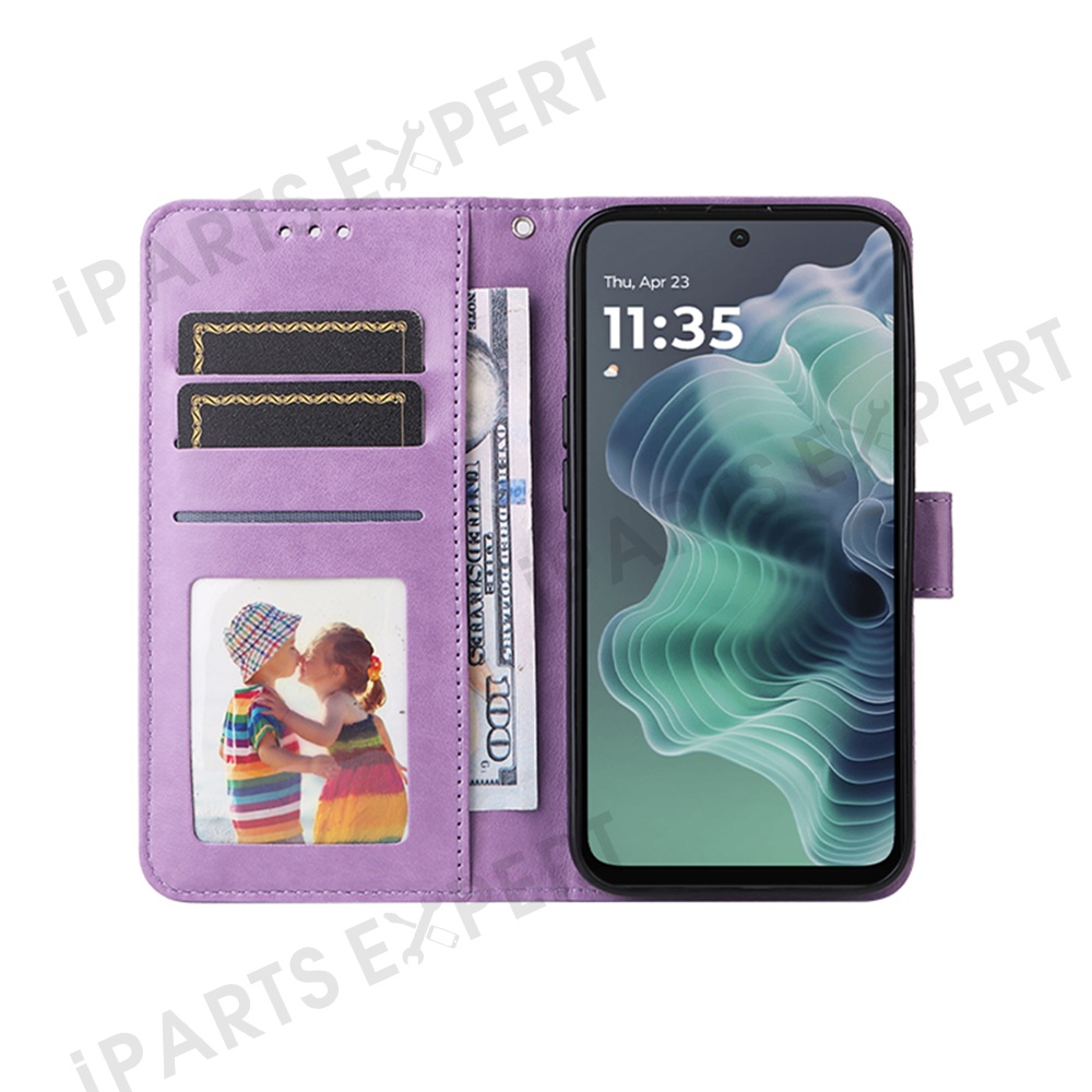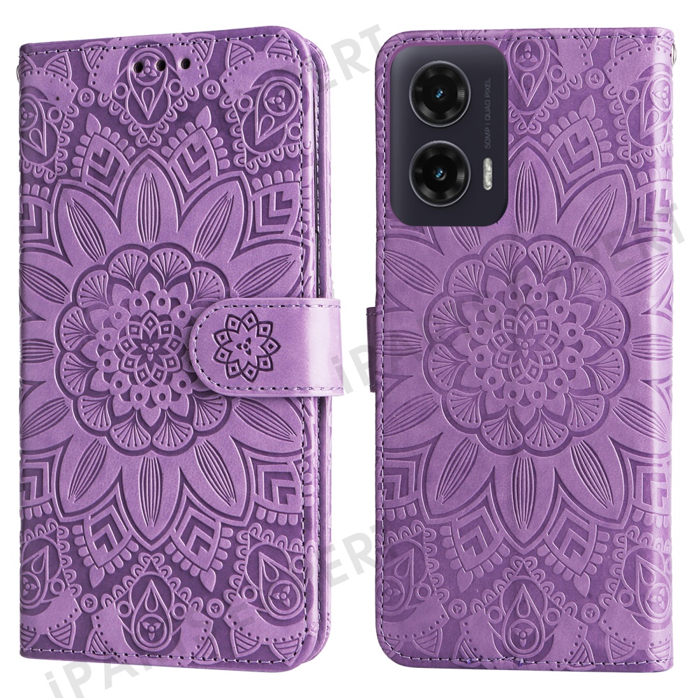 For Motorola Moto G35 5G Case Sunflower Imprint Leather Wallet Phone Cover - Purple